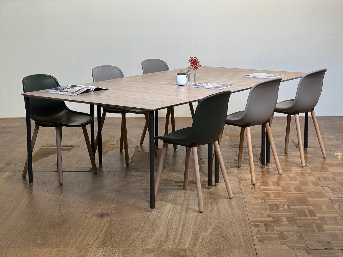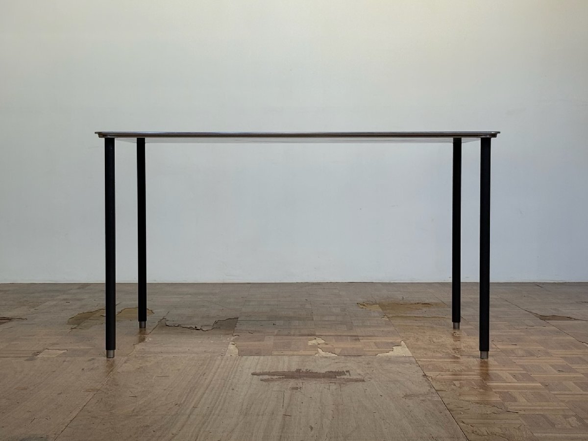 みずみずしい大ぶりな杢目のエルム天板の内部構造に高性能アルミ製のハニカム構造を仕込むことで極限レベルのスリムさ軽量性を実現しつつ、ライトを受けてきらめく天板周囲のシルバー材にほっそりとしたクリーンなポールレッグスをあしらった、ミニマリズムの王道をいく端正なデザインでブランドを代表するプロダクトとなったセラーダイニングテーブル。Cassina / by interiors より。