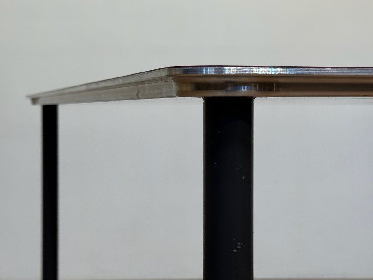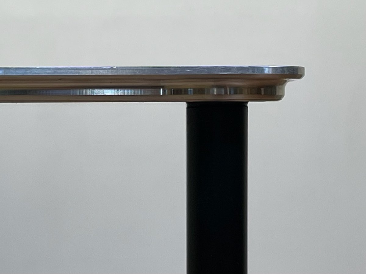 スリムさを追求した天板は、構造を支える上で必要な厚みは中央に狭めることでエッジ部をシャープに演出、エッジーなテイストにシルバーの天板サイドが美しいチャームになっています。