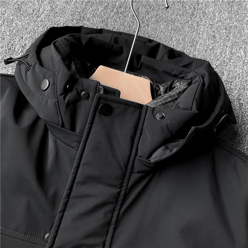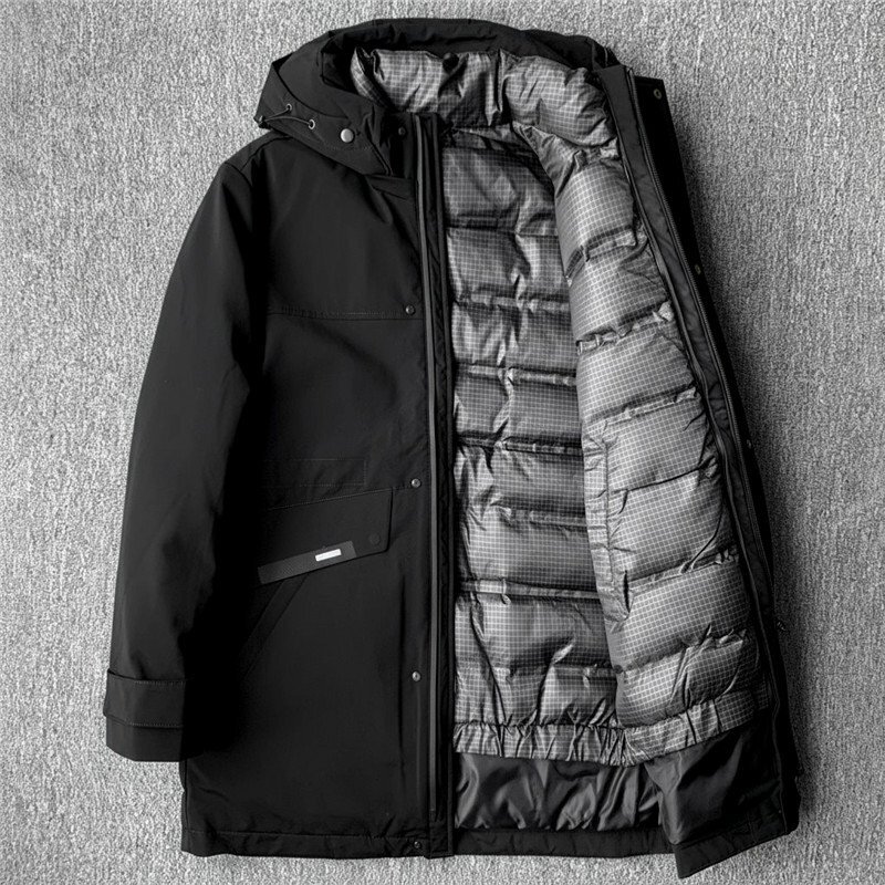 新品 DCKMANY ダウンジャケット ミドル丈 フード&ダウンライナー取り外し可能 キルティング スタンドカラー 極地防寒 防風 撥水 厚手 冬服 メンズ ダウンコート 黒 E5530-L