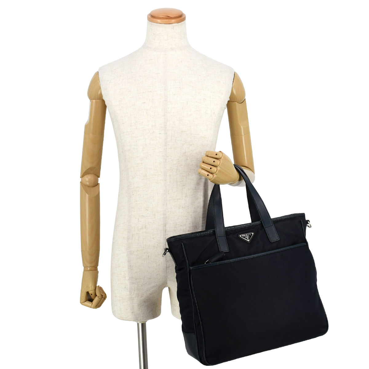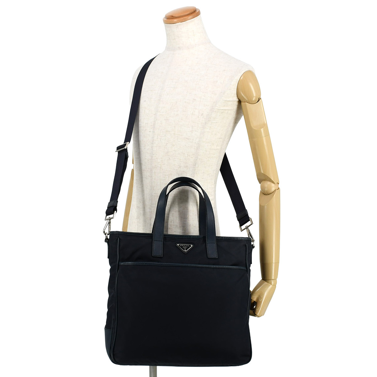 フロントのトライアングルロゴがプラダを象徴しており、高級感溢れる2wayトートバッグです。