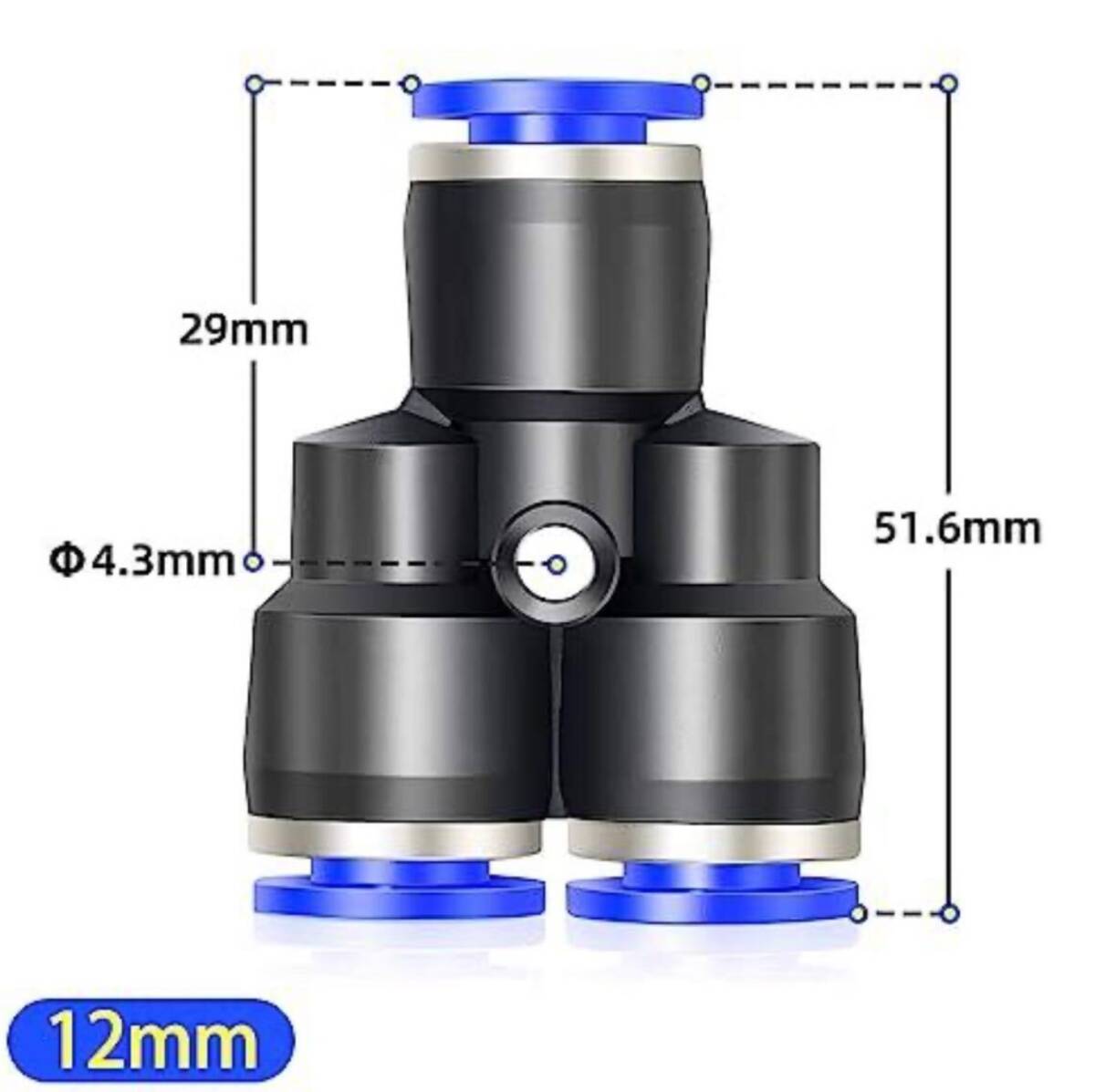 品名:TAILONZ PNEUMATIC青色Y型分流器-12 mm管外径プッシュ接続管クイックジョイント プッシュロックPY-12(10個入り)