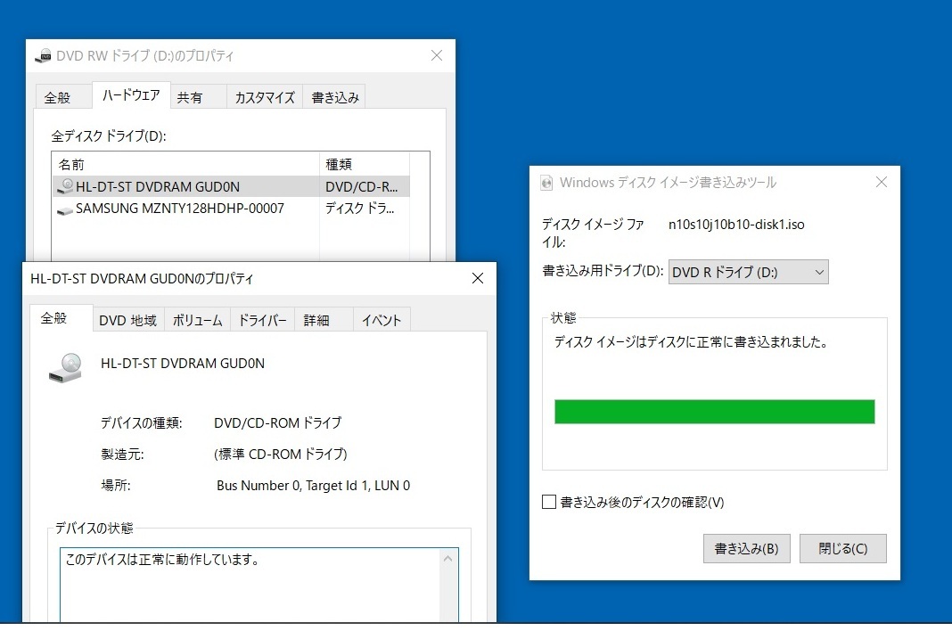 ・DVD-RWの書き込みテスト(約4.3GBのISOファイルを連続2回書き込みOK)