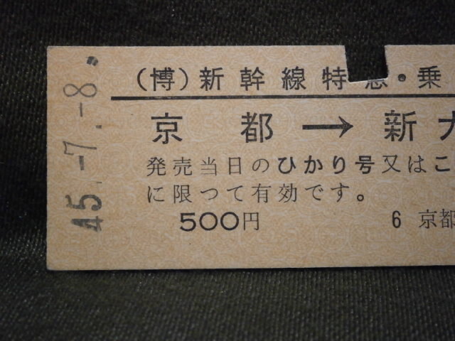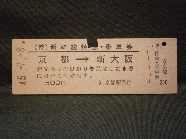 国鉄 (万国博用)新幹線特急・乗車券 京都から新大阪ゆき