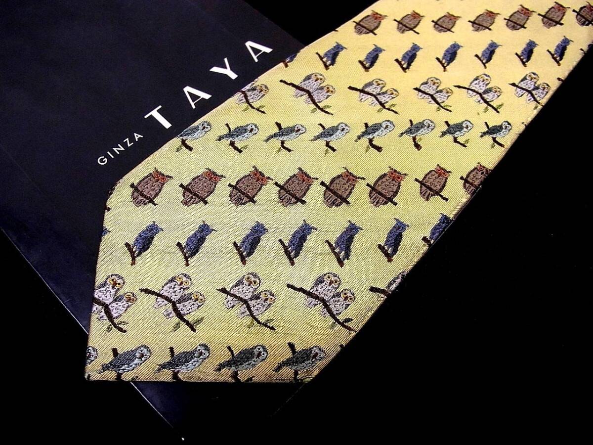 5G0765【超特売】銀座の老舗TAYA田屋「フクロウ梟」【最高級・刺繍オーバー10】 Over10 ネクタイ