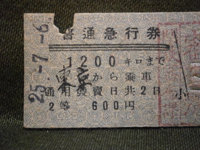 国鉄 2等 東京駅 普通急行券 1200キロまで