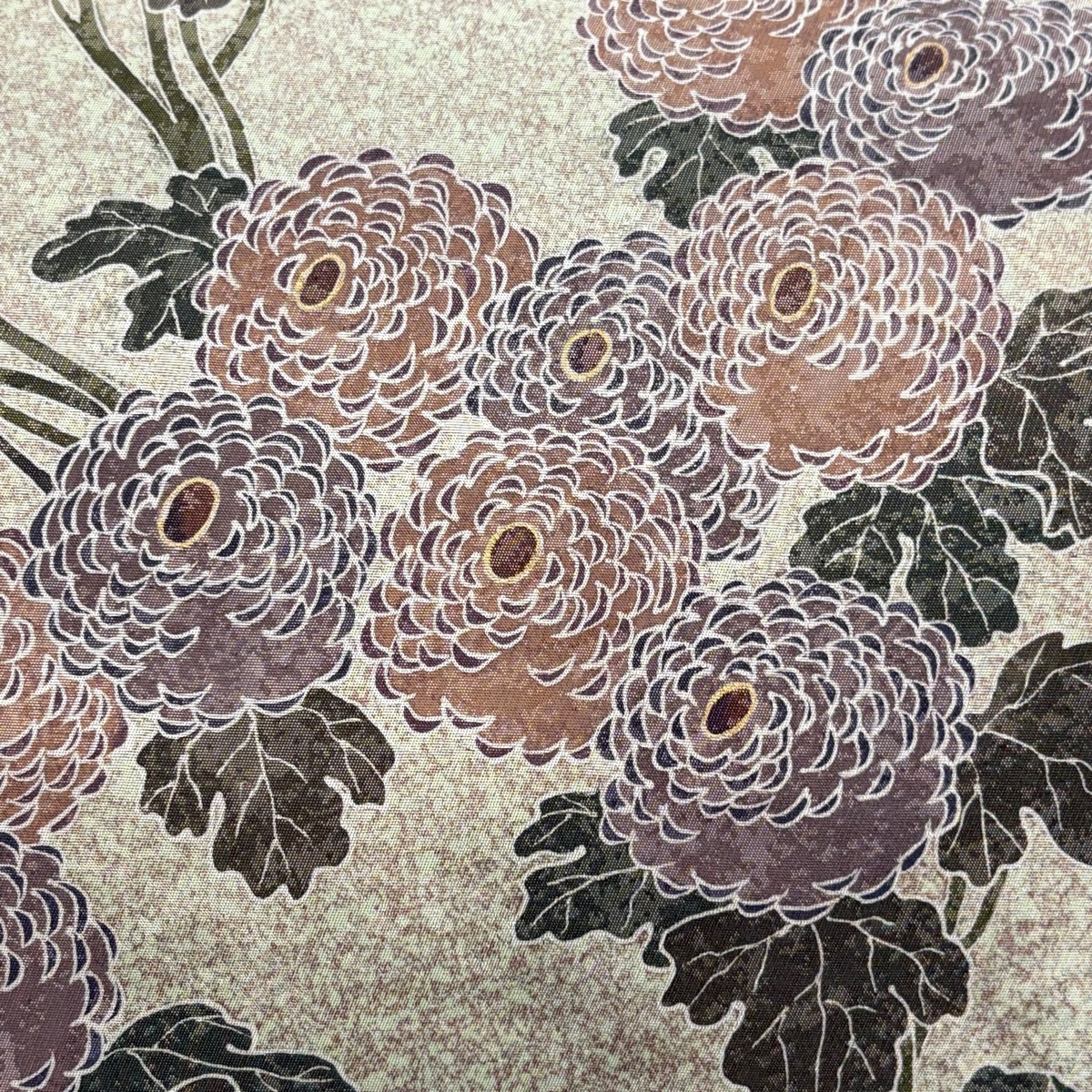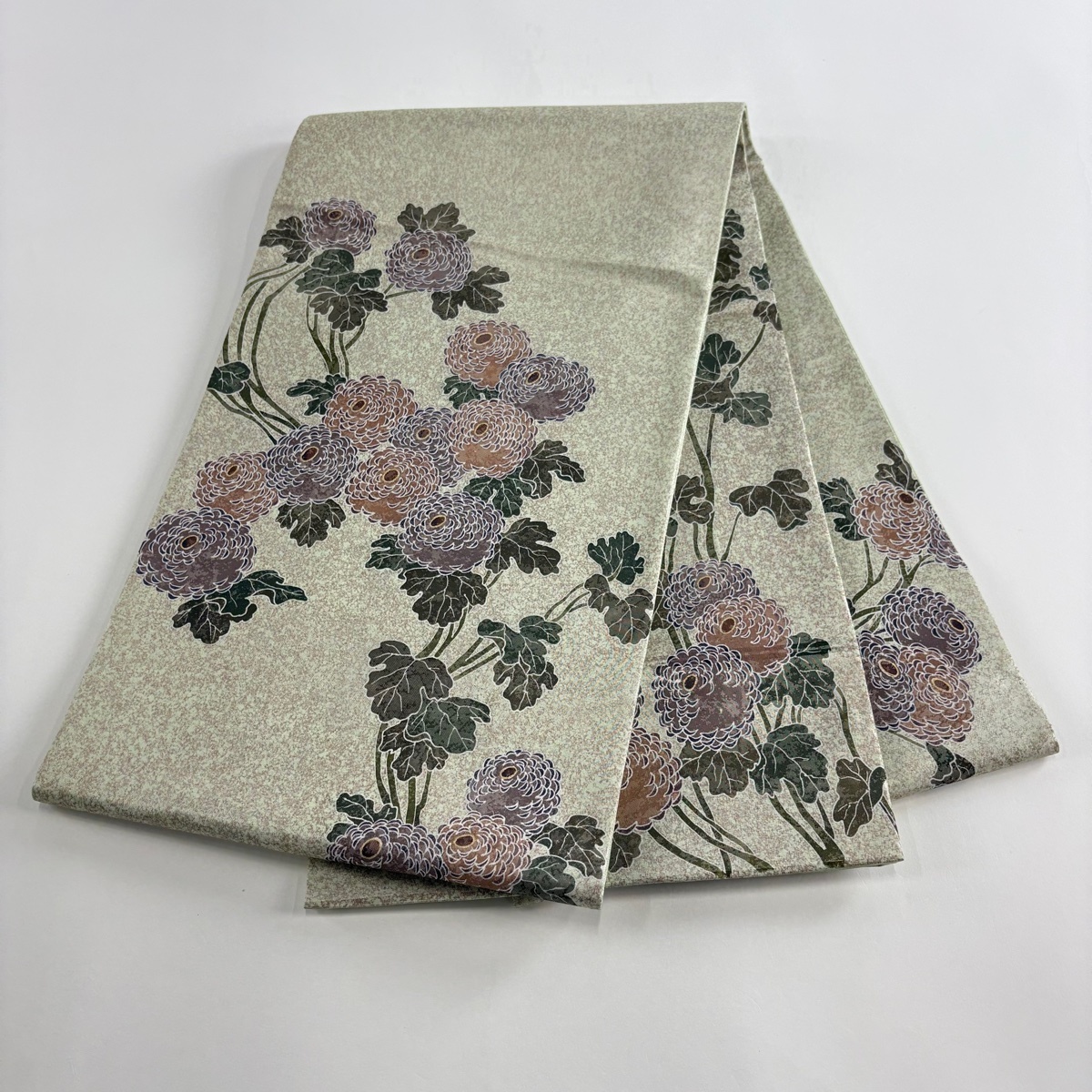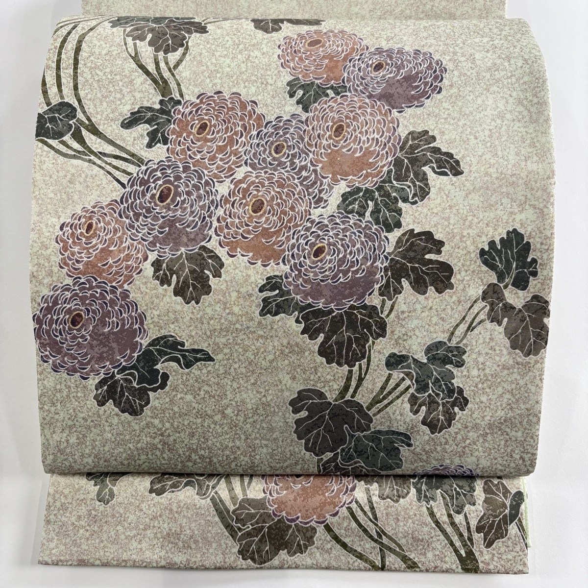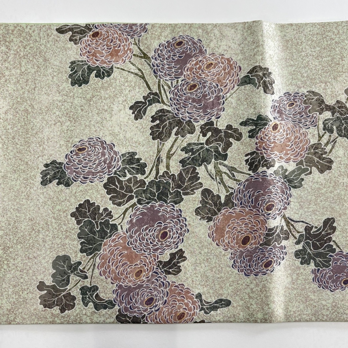 | 袋帯 美品 秀品 落款 菊 箔 薄緑 お太鼓柄 正絹 【中古】 |