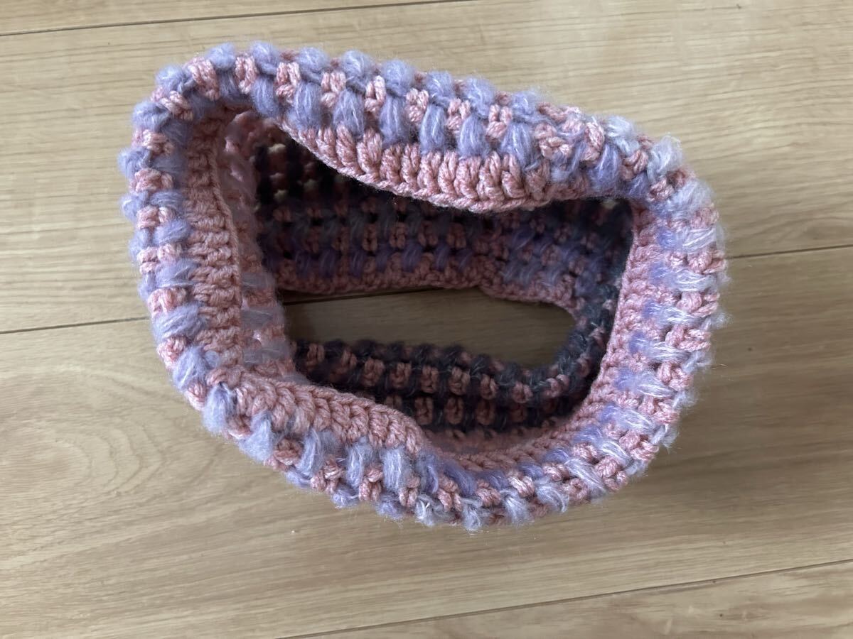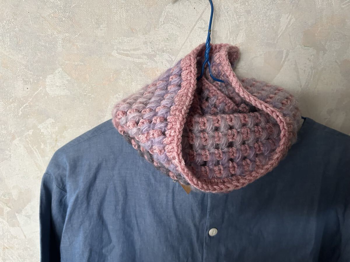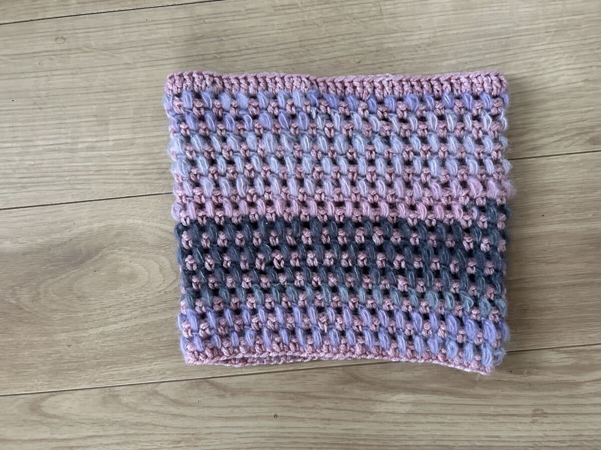 アクリルとポリエステルの糸で玉編みのネックウォーマーを編みました