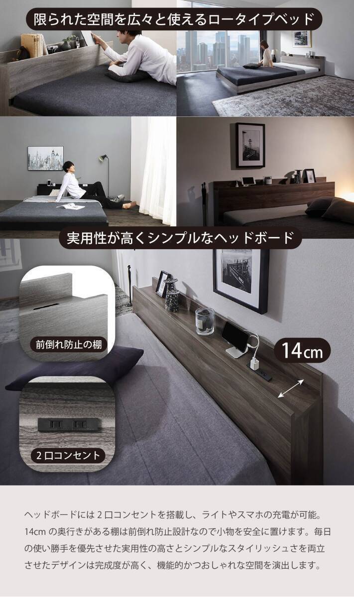 ローベッド ダブル 低め マットレス付き ベッドフレーム ロータイプ フロアーベッド 天然スノコ 新品 送料込み