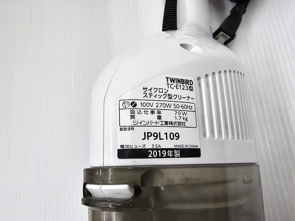 【中古品】 ツインバード TWINBIRD サイクロンスティック型クリーナー TC-E123 2019年製 ○YR-17270○ の出品です。