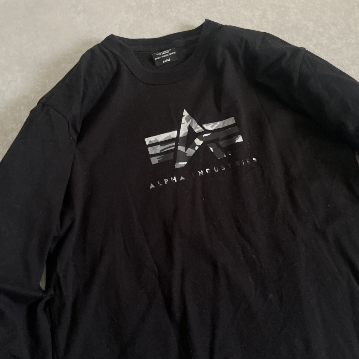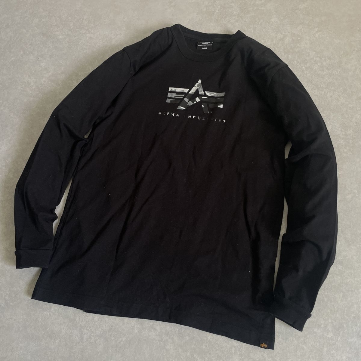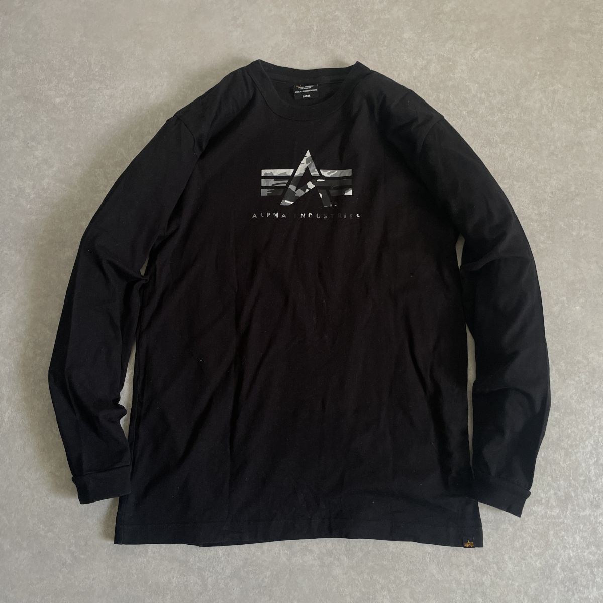 ALPHA●Lサイズ●ロゴ プリント 長袖 ロングスリーブ 丸首 クルーネック コットン ロンT●アルファ