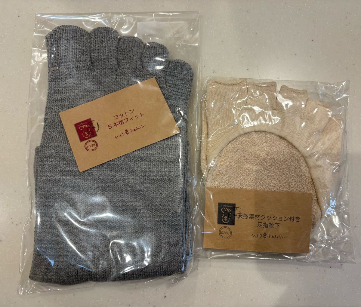【未使用】シルクふぁみりぃ 天然素材クッション付き足指靴下:コットン5本指フィッ:
