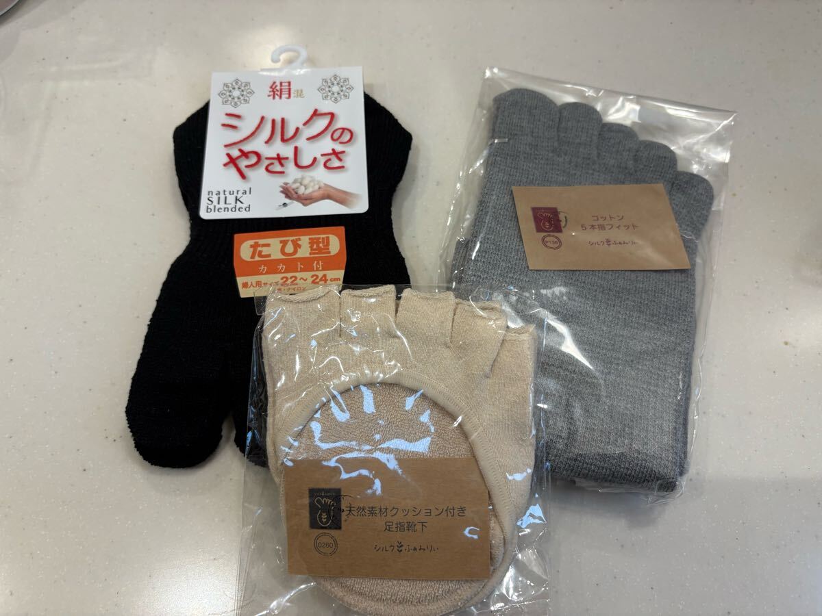 ①未使用 シルクふぁみりぃ 天然素材クッション付き足指靴下(税込み600円)