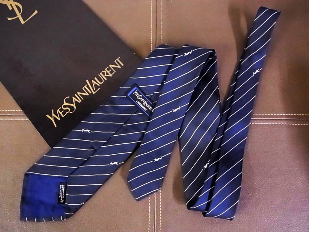●5-4498●在庫処分SALE●【YSLロゴ入/ストライプ 柄】サンローラン ネクタイ