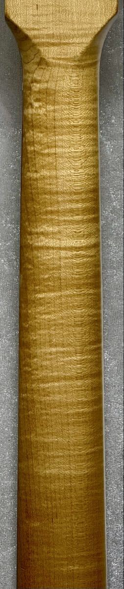 このモデル最大の特徴とも言えるメイプルネックはなんとバリ虎フレイム入り、24フレット仕様のローズウッド指板
