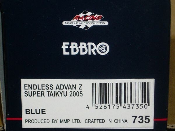 1/43 EBBRO ENDLESS ADVAN Z SUPER TAIKYU 2005 No.3 青です。箱が少し傷んでいますので、ご了承の上入札ください。商品の状況は写真でご判断の上、ノークレーム・ノーリターンでお願いします。保証はできませんが、定形外郵便での発送も可能です。
