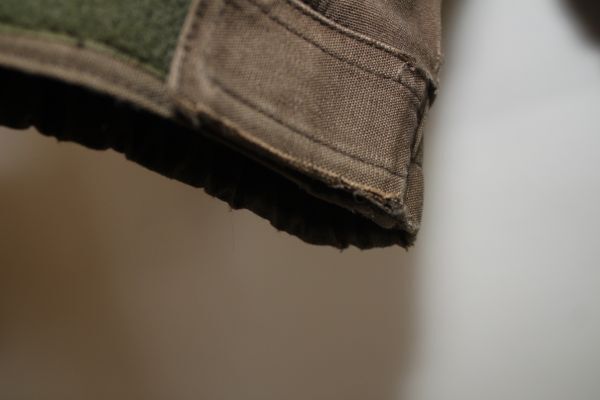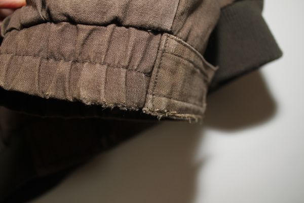 ●裏こげ茶系ポリフリース地、両袖口伸びとスレの小穴亀裂あり(画像6-7参照)、薄シミ若干あり、部分的に色あせあり