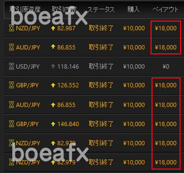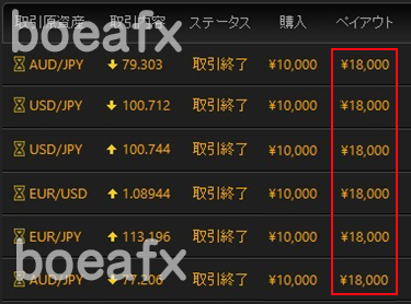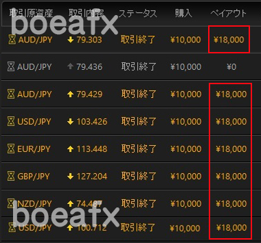 これにより、勝率は8割程度を維持しています。繰り返しますが、バイナリーオプションは勝てる場面で勝てる方向にエントリーすれば、10回に8回は勝てるのです。
