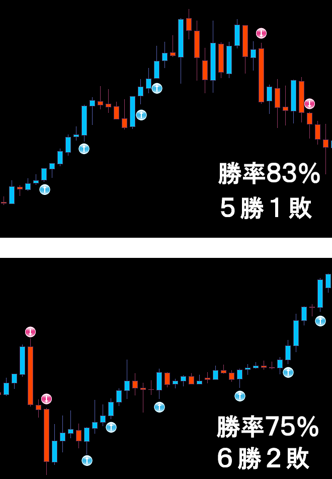 3.そして、サインツールを参考にエントリーをします。結果的に、勝てる場面でのみエントリーができて、無駄な損失を最大限減らすことが可能です。