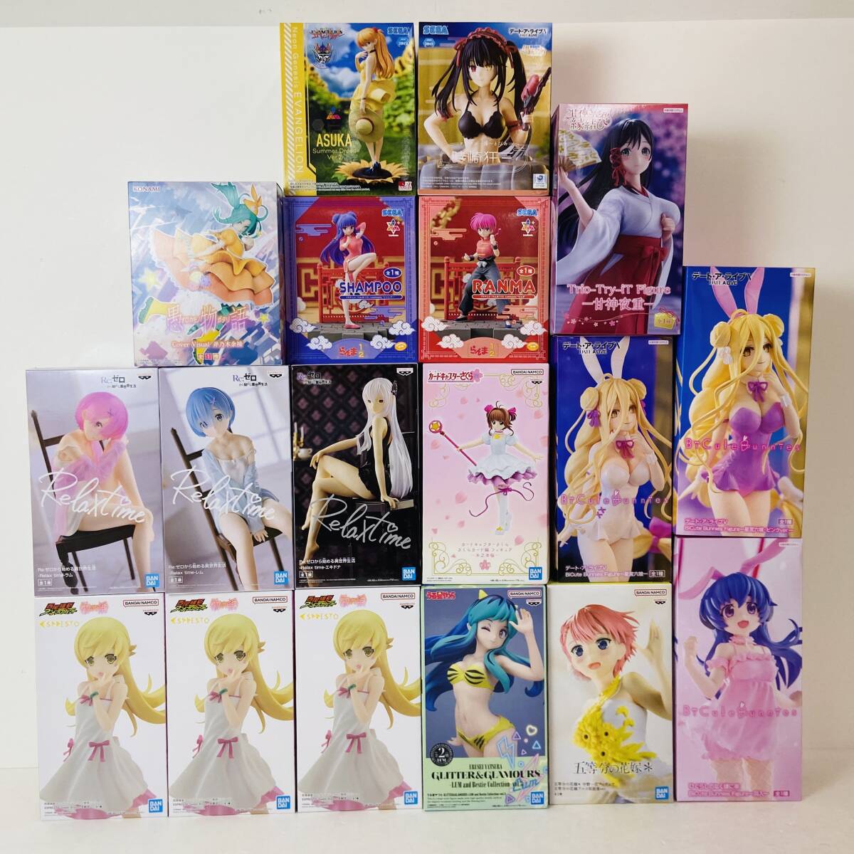 04wy13990○【1円~】未開封 プライズ フィギュア 18箱 まとめ売り [物語シリーズ|デート・ア・ライブ|らんま1/2|CCさくら|リゼロ 他]
