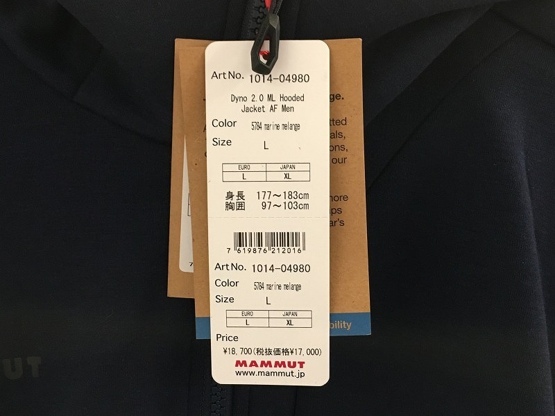 マムート MAMMUT 【並品】【タグ付き】ダイノ2.0 ミッドレイヤーフード ジャケット 1014-04980