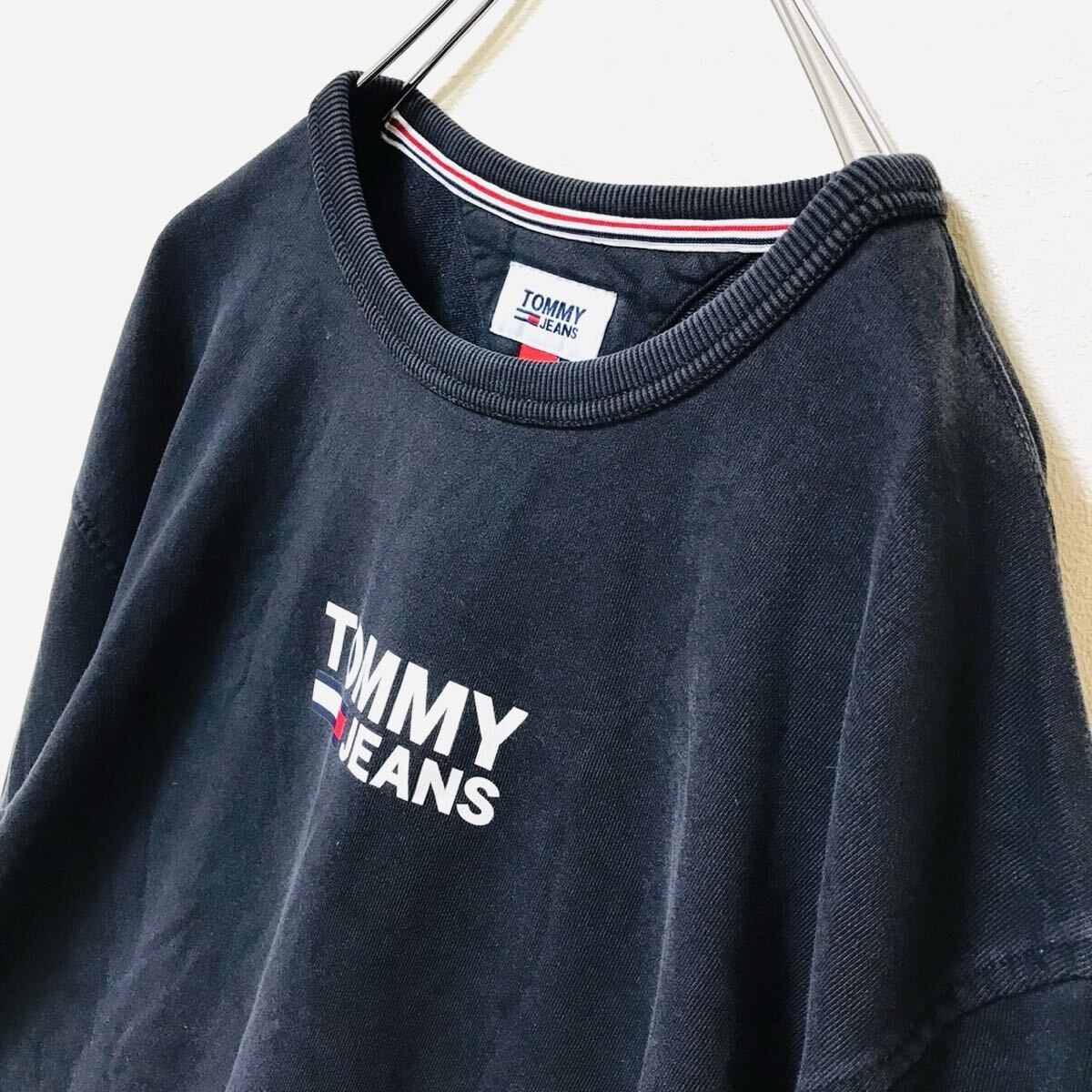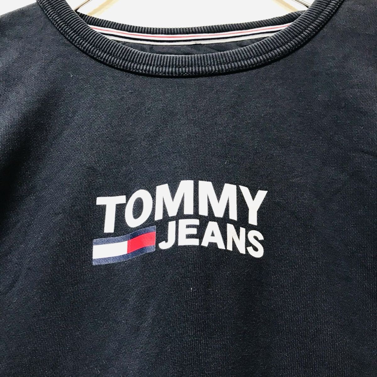 TOMMY JEANS トミージーンズ スウェット 刺繍ロゴ ブラック XL コットン100% ビッグシルエット ストリート系 Y2K レトロスポーツ 古着 通年着用可