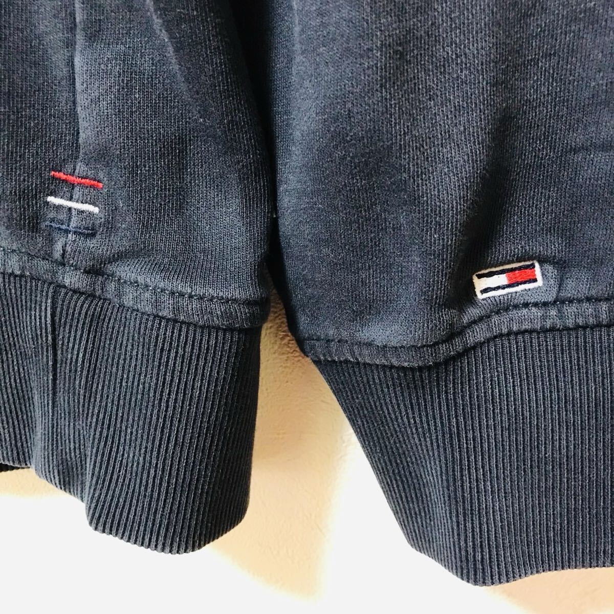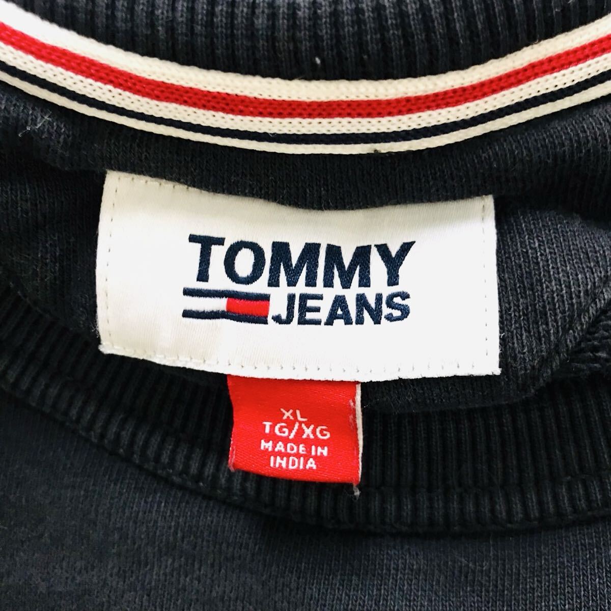 トミージーンズのロゴスウェット。胸元にブランドアイコンの刺繍ロゴを配したベーシックなデザインで、シンプルながら存在感のある一枚です。