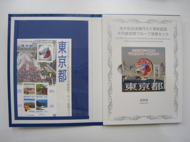 | 1円スタート 地方自治法施行60周年記念千円銀貨幣プルーフ貨幣セット 東京都 Bセット切手付き 80円切手5枚 のご紹介です | |||||