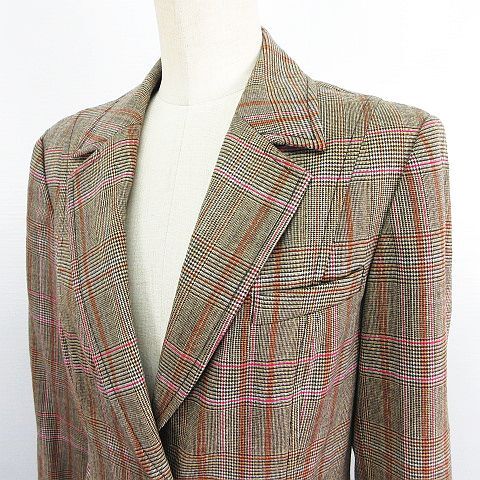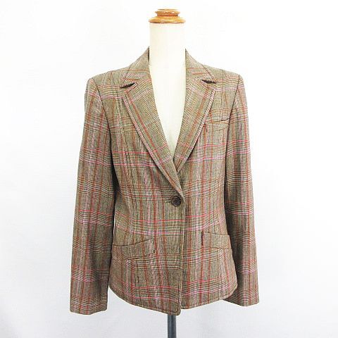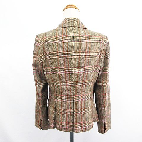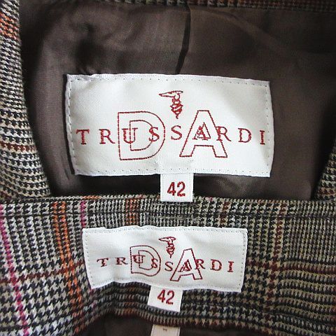 トラサルディ セットアップ パンツスーツ テーラード 長袖 ブーツカット チェック ウール混 ストレッチ 42 ブラウン ※EKM レディース