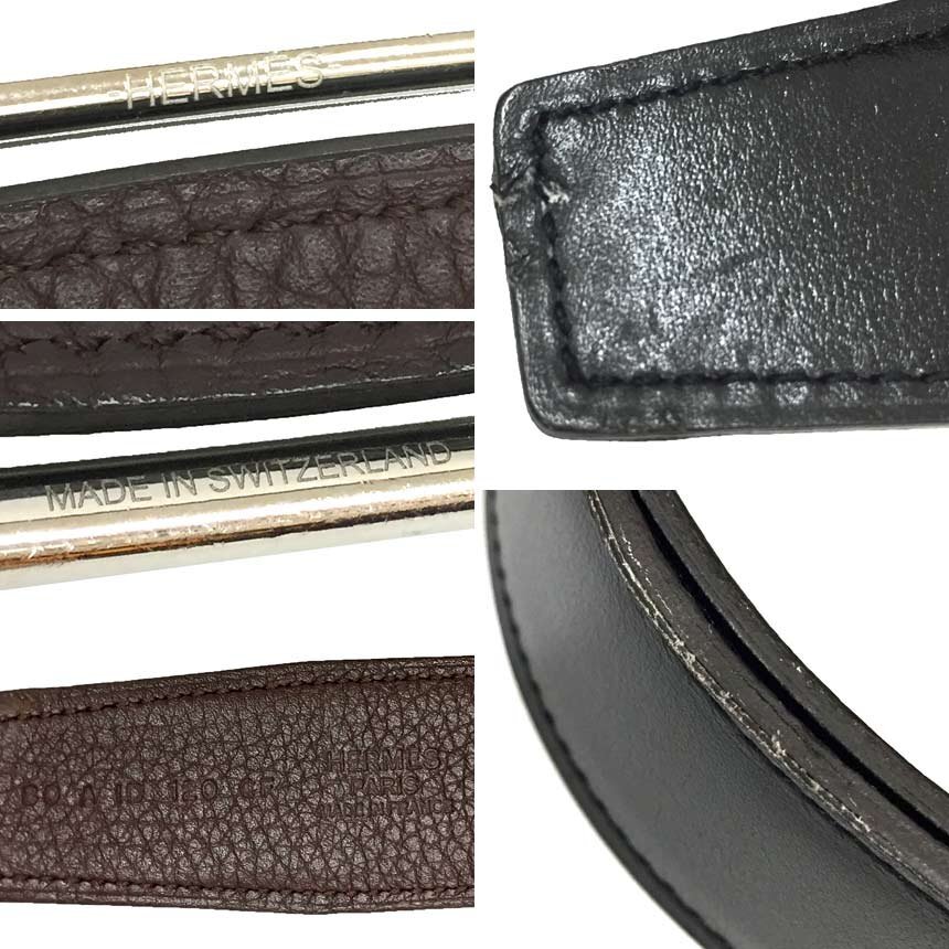 | PRコメント | エルメスのオスカーベルトが入荷しました! セリエボタンがモチーフアクセントになったベルトでリバーシブルで使えます。 シンプルで幅広いシーンでお使い頂けるリバーシブルタイプベルトは一本あるととても便利。 ブラックのボックスカーフのほうはビジネスシーンに!トゴのブラウンのほうはデニムスタイルに!と、オンオフ問わずユニセックスで楽しめるベルトです。 シンプルで長く使える定番として不動の人気を誇るオススメのアイテムです。 仕様:A刻印 MADE IN FRANCE |