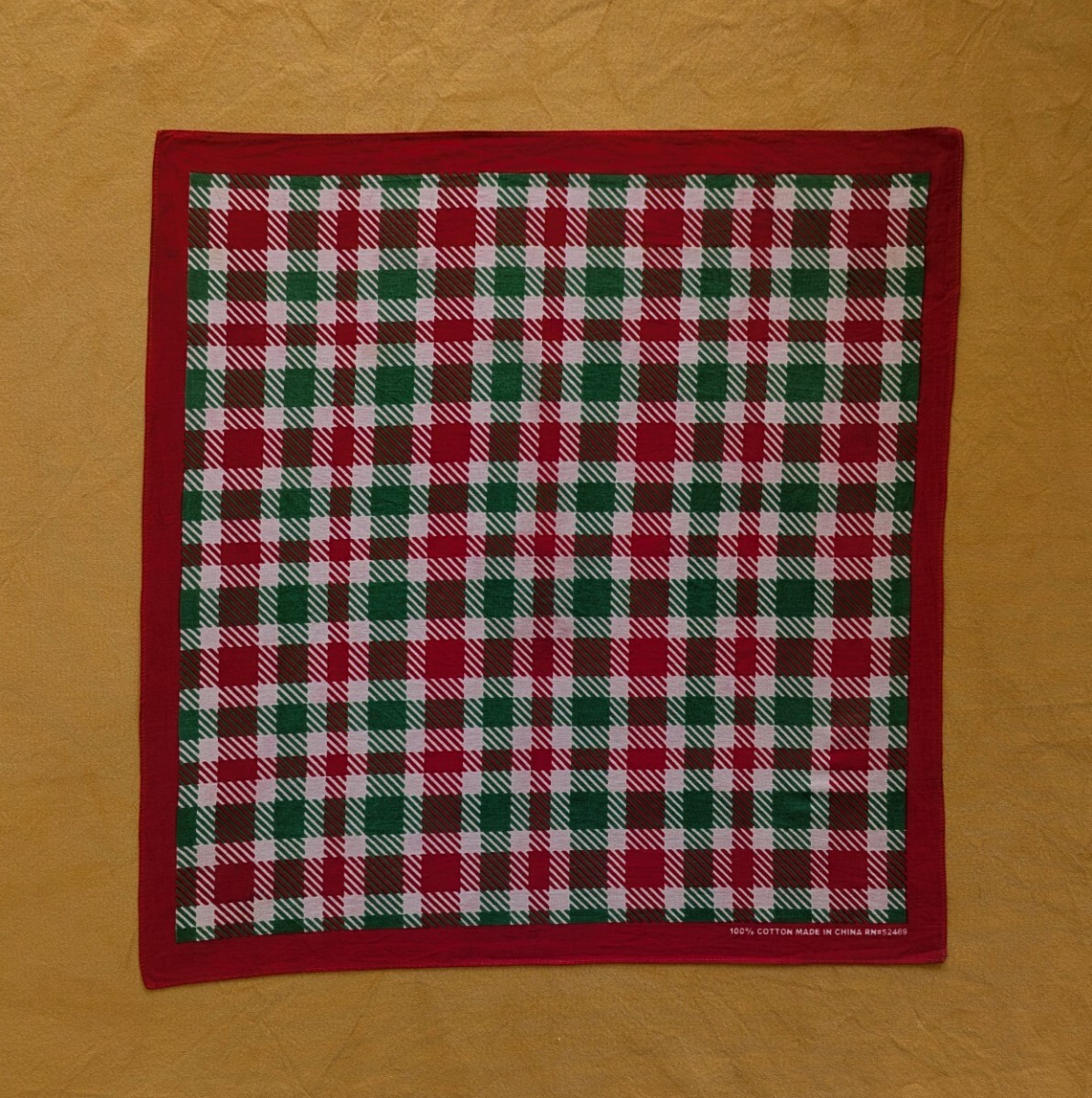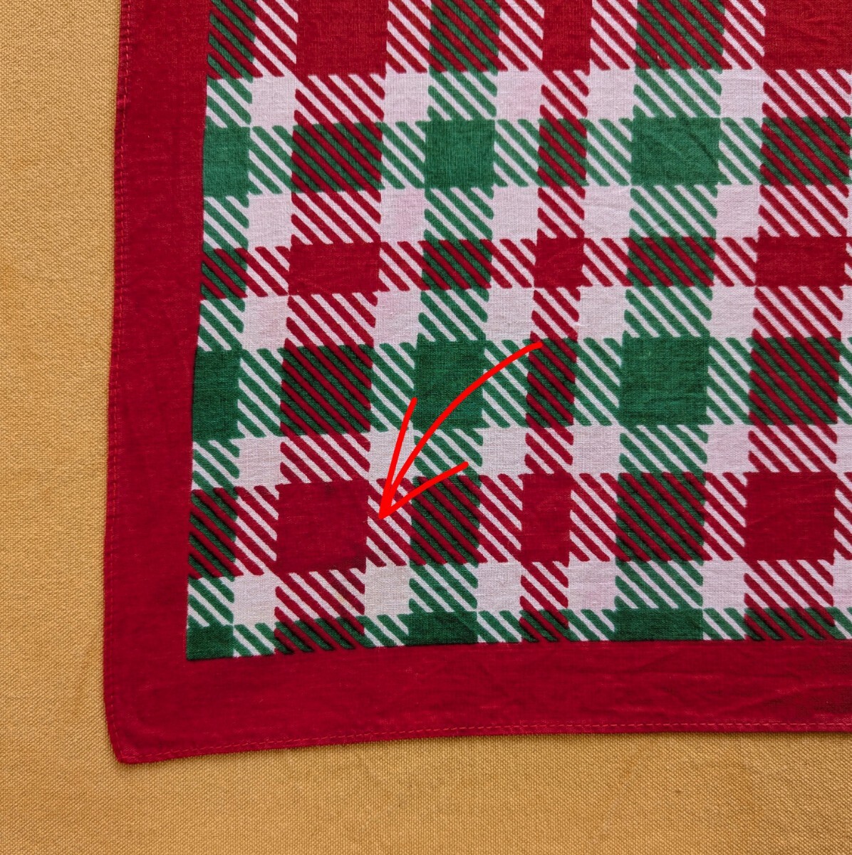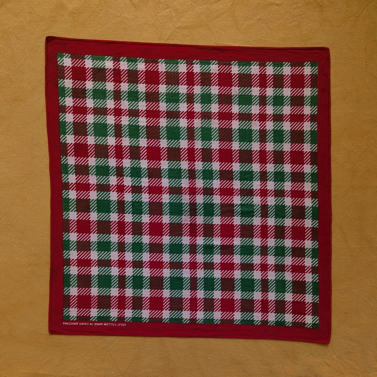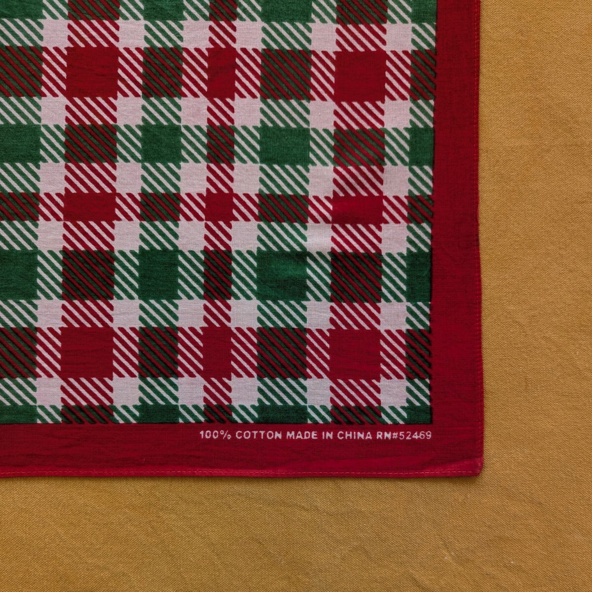 バンダナ ハンカチ チェック 柄 100%COTTON コットン 綿 サイズ52cm×54cm 赤×緑×白 MADE IN CHINA RN#52469 古着 used ※汚れあり