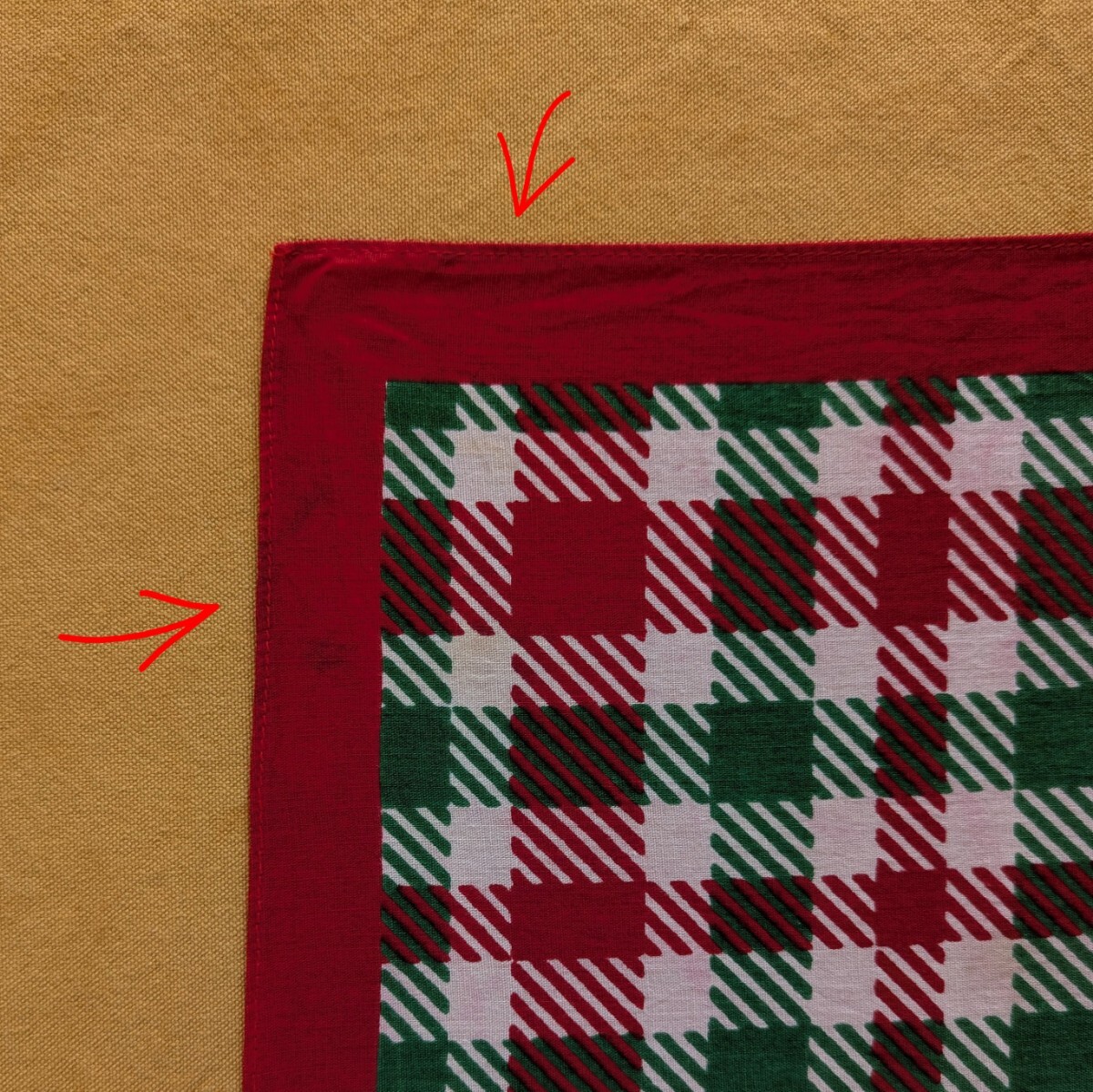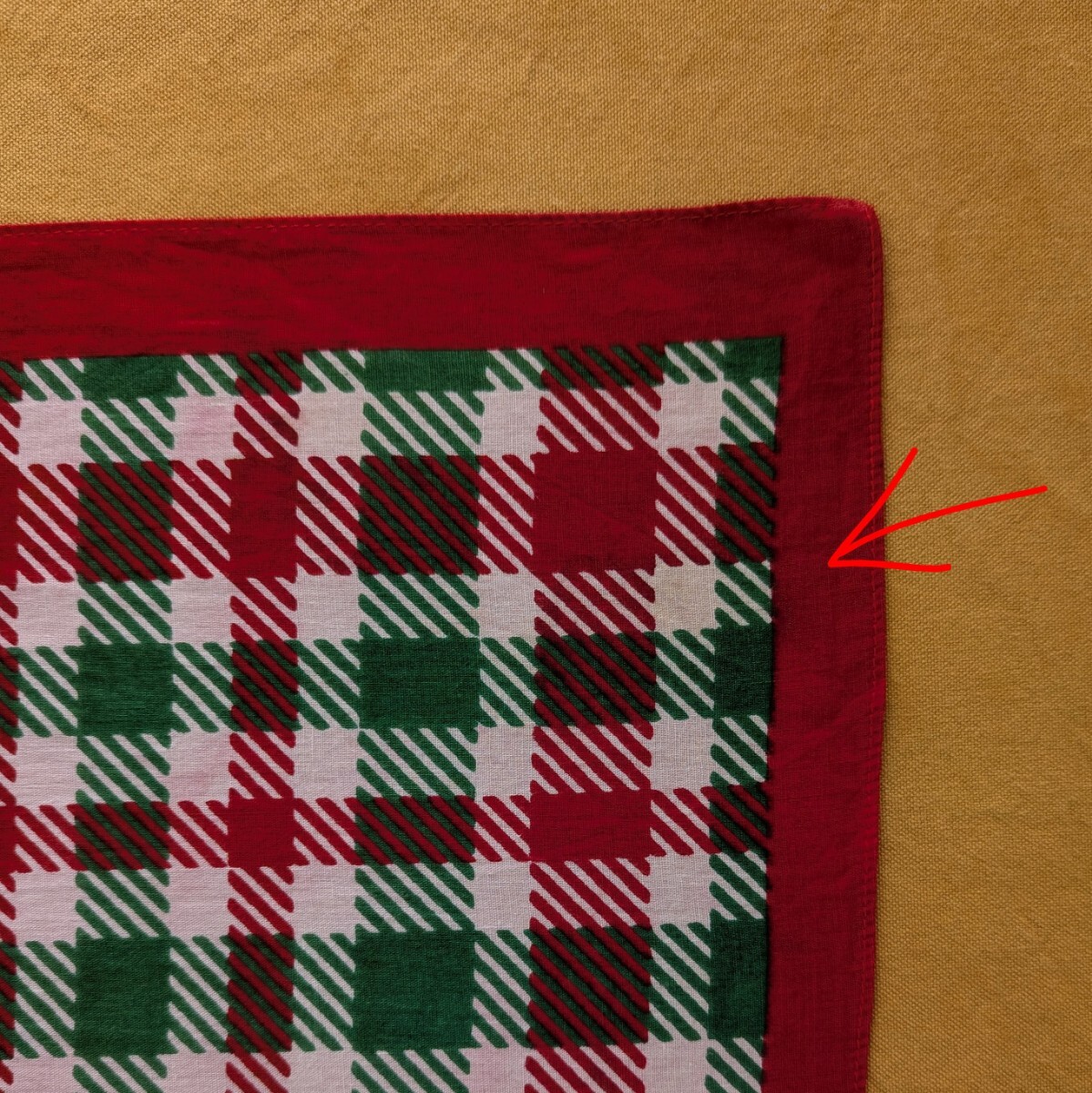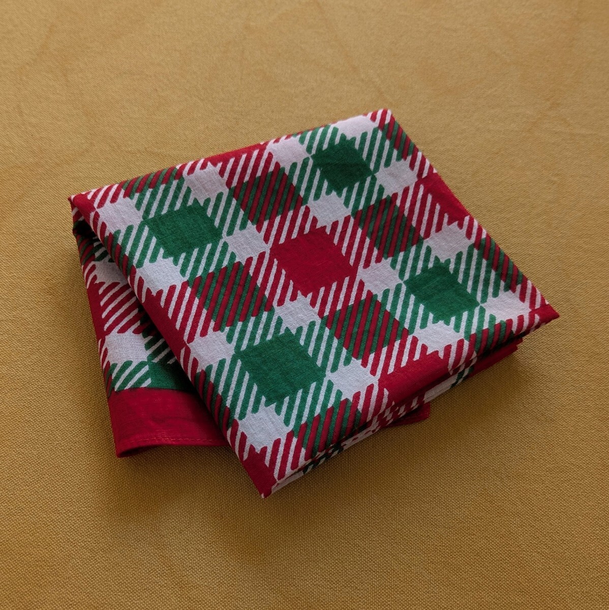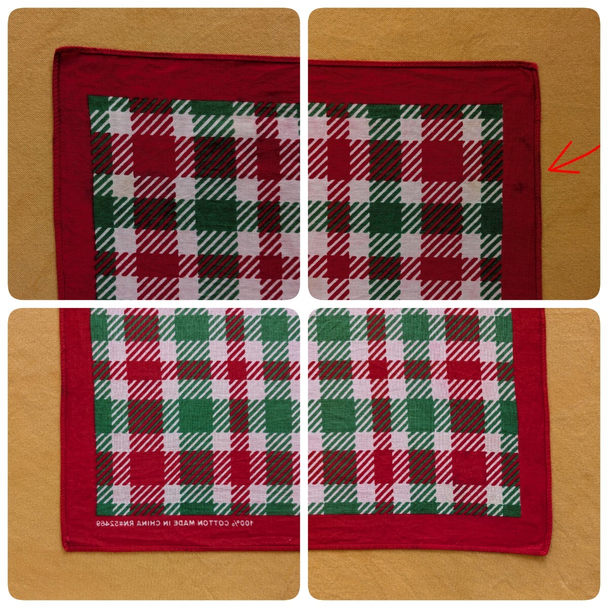 バンダナ ハンカチ チェック 柄 100%COTTON コットン 綿 サイズ52cm×54cm 赤×緑×白 MADE IN CHINA RN#52469 古着 used ※汚れあり