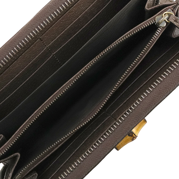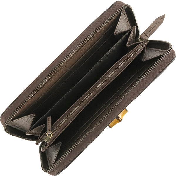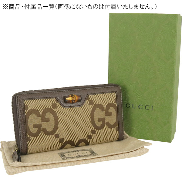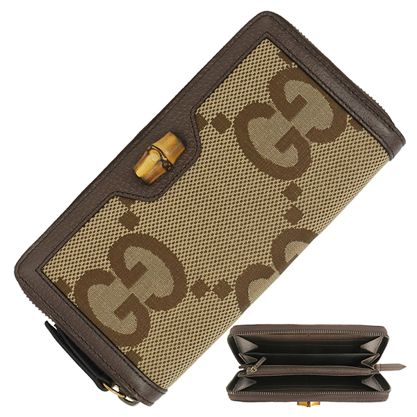 | スタッフコメント | 1990年代のバンブー ハンドル トートバッグから着想を得た【グッチ ダイアナ】。クラシックなレザーで仕立てたラウンドジップウォレットは、お札や小銭・クレジットカードをしっかり収納できるので、ギフトやプレゼントにも最適です。 |