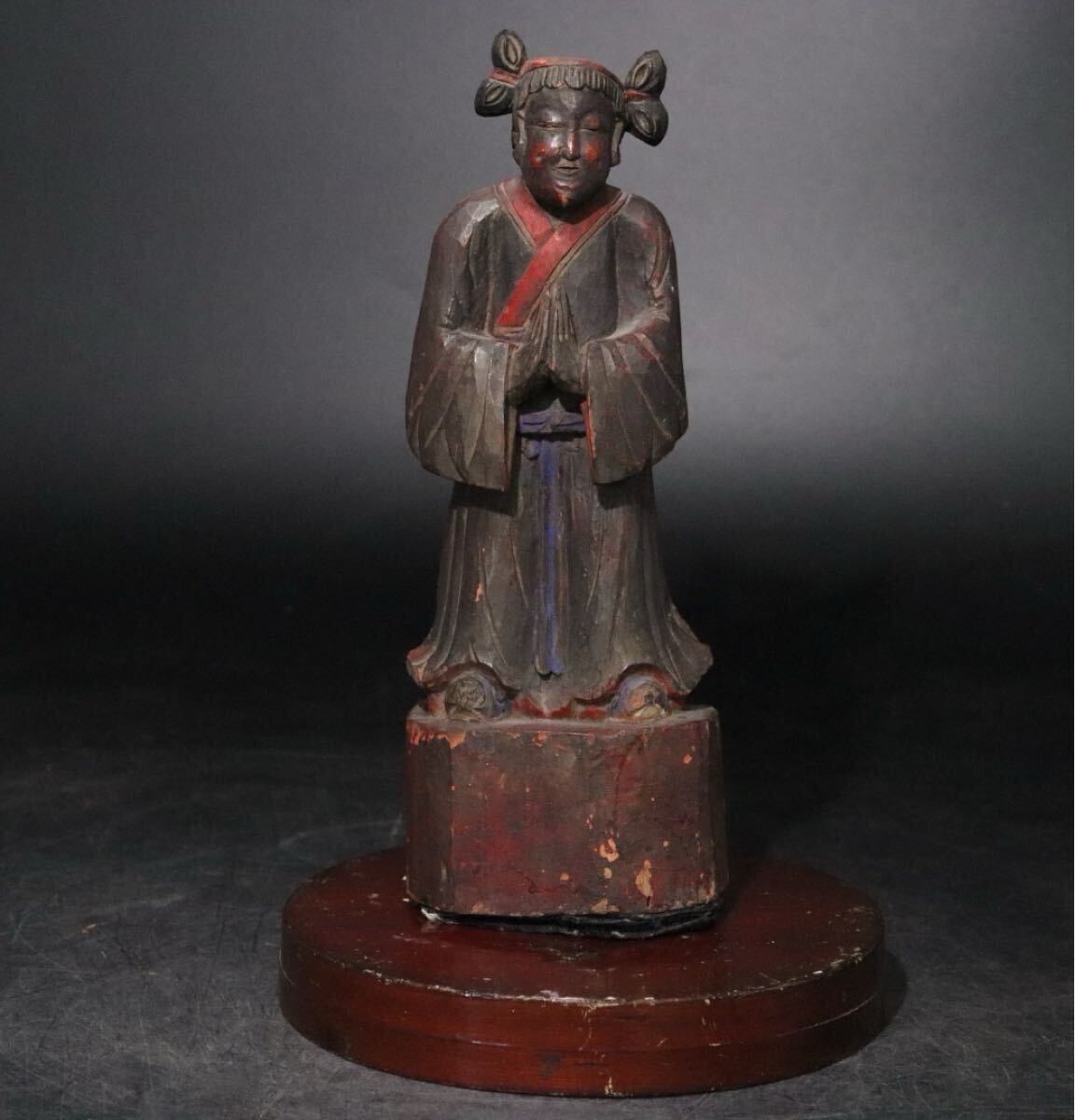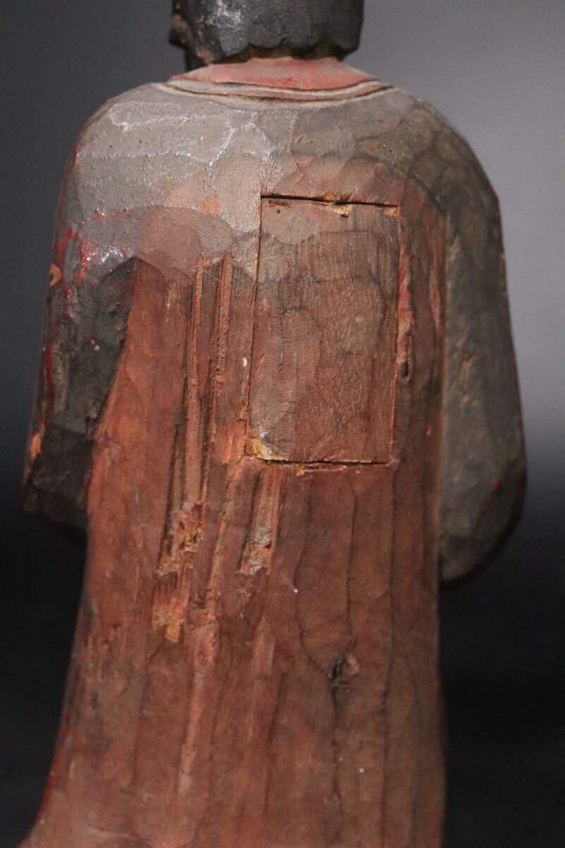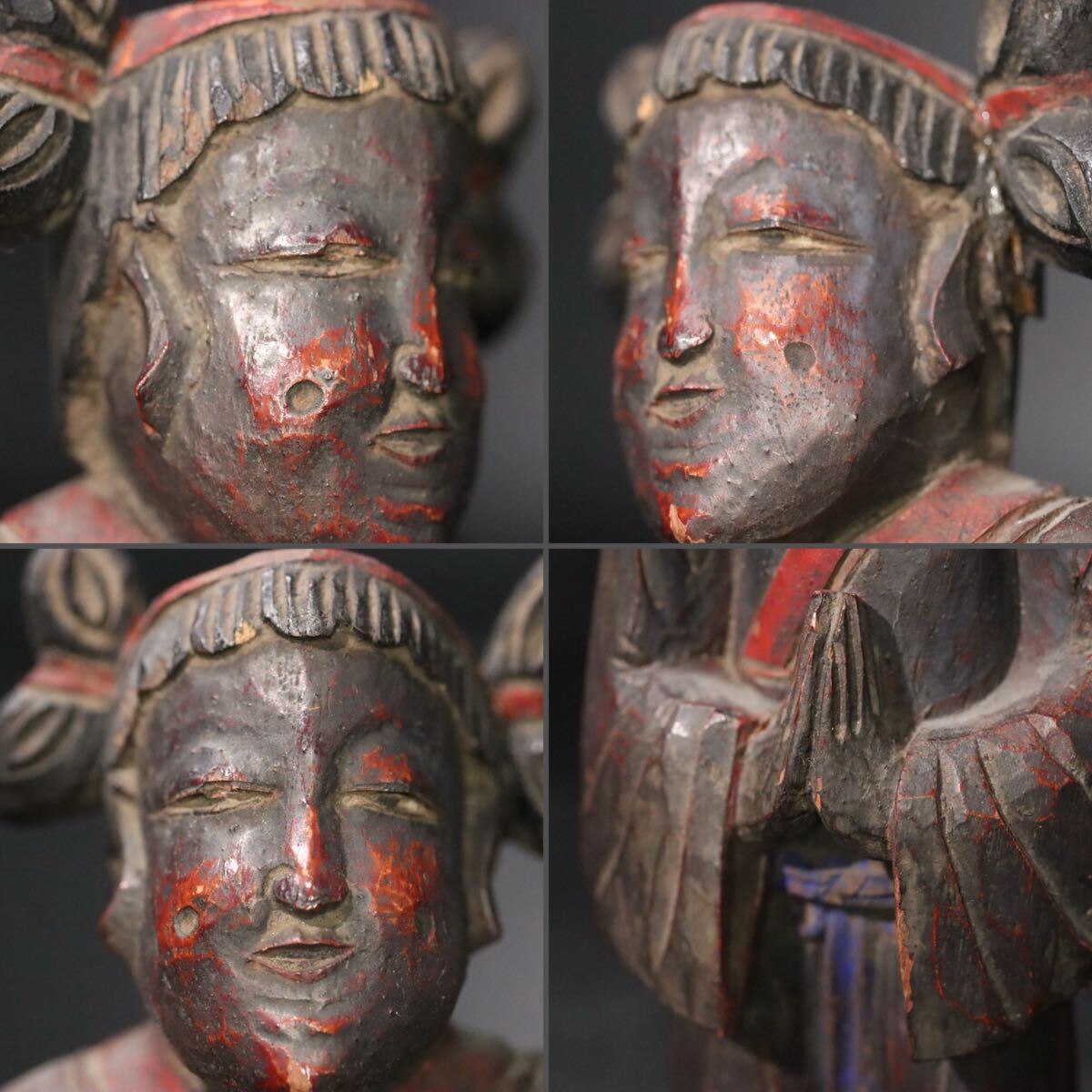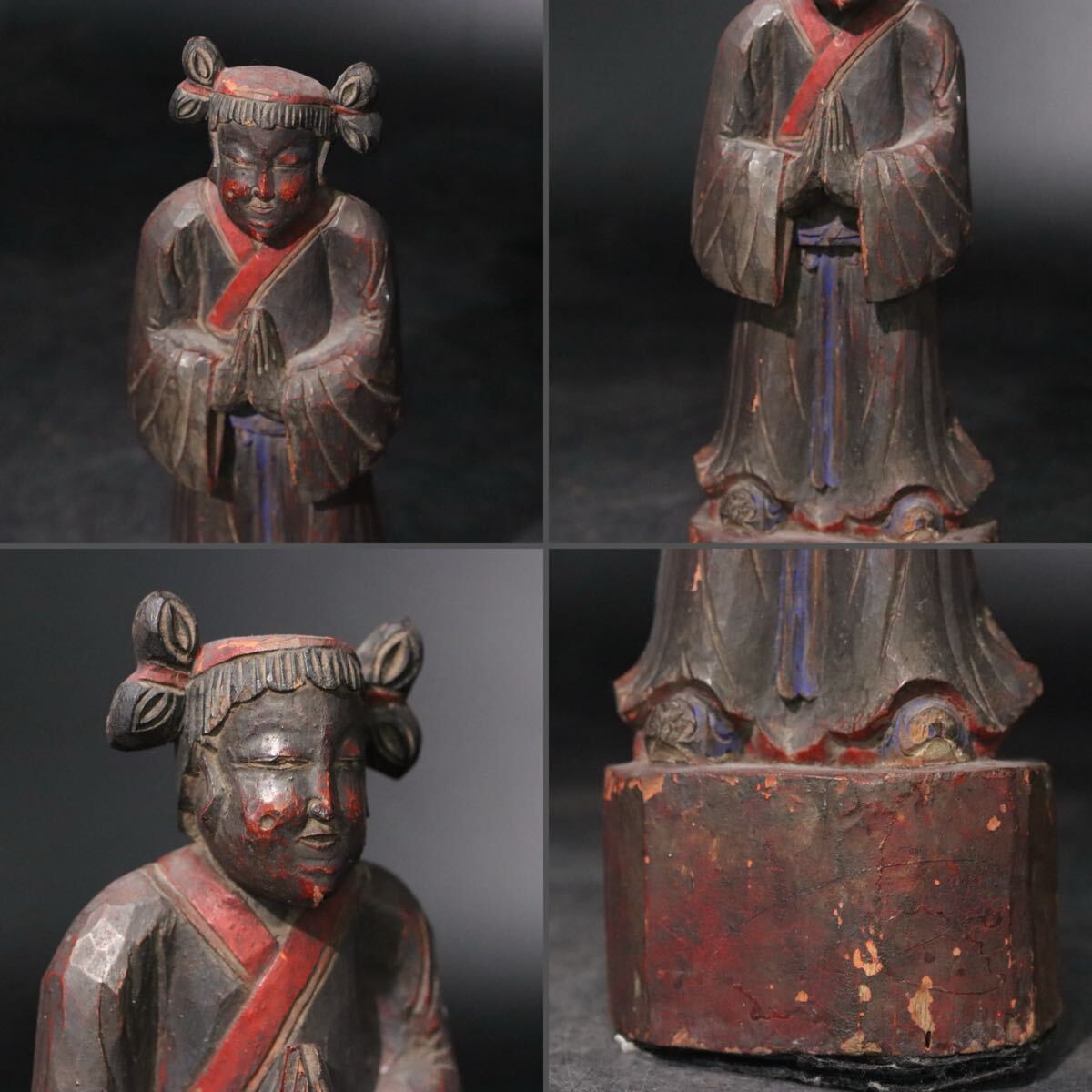 | 時代 木製 彩色 人物 立像 台座付 / 中国美術 木彫 置物 煎茶飾 仏像 .B1286 |