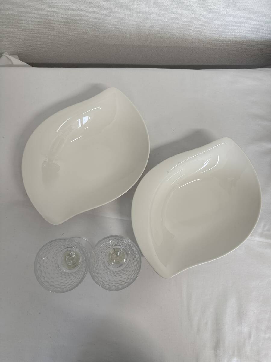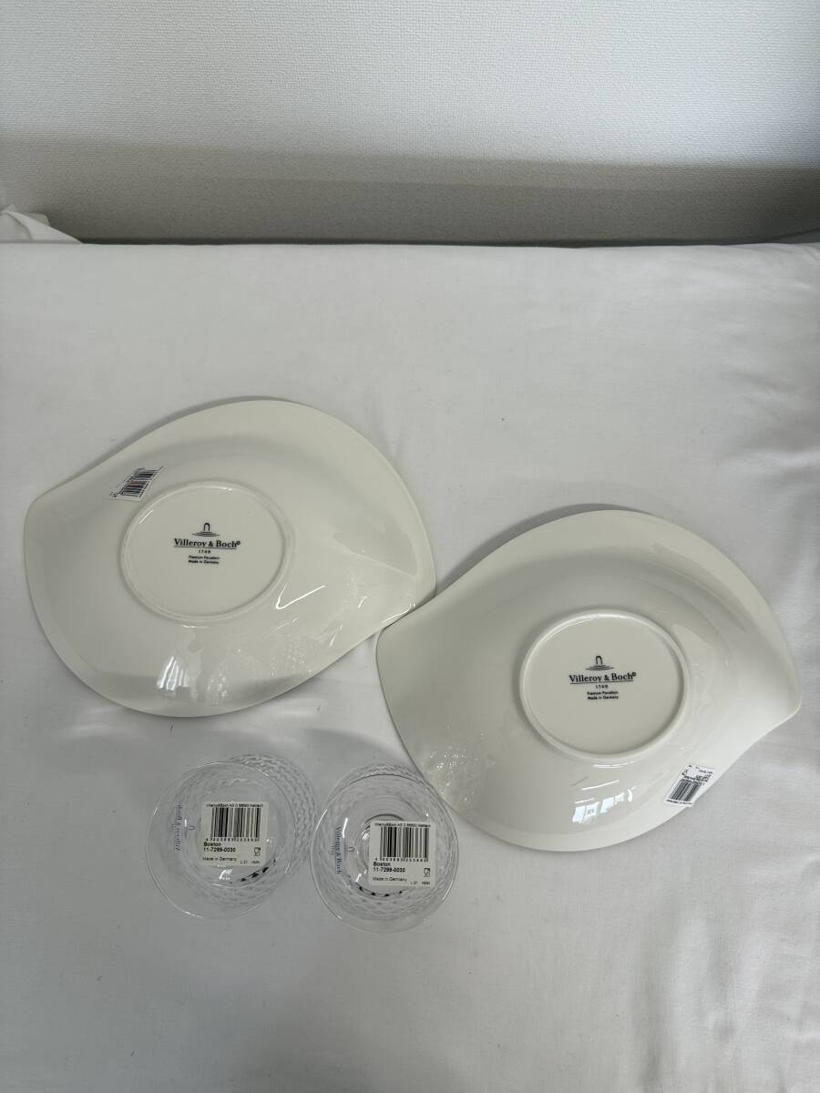 【2628】Villeroy&Boch/ビレロイ&ボッホ ペアワイングラス&お皿セット