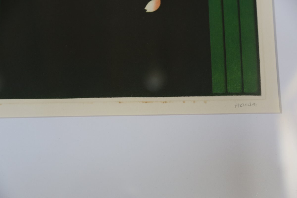 本田和久:1948年 愛媛県生まれ 1971年、大阪芸術大学卒業。 1974年、渡仏しアトリエ17でヘイターに師事、合わせて濱口陽三に師事。 1977年、ミニアチュール版画展(NY)グラフィック・ケミカル賞受賞。 1981年、画集「AWAkening」刊行。 1993年、銅版画集「MEZZOTINT by HONDA」刊行。 46/65。経年ありますが状態良好です。縦67cm、横50.5cm。ノークレーム、ノーリターンでお願い致します。この他にも出品しておりますのでご覧下さい。ここをクリック