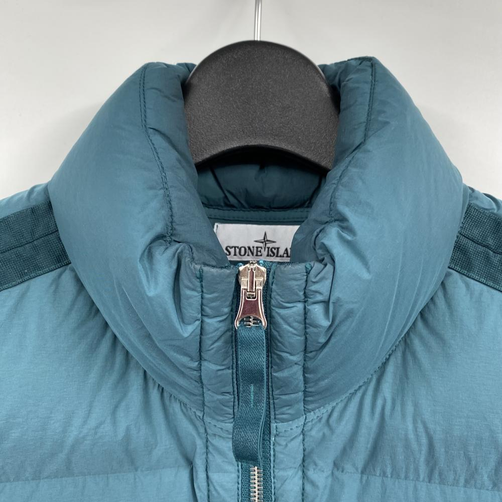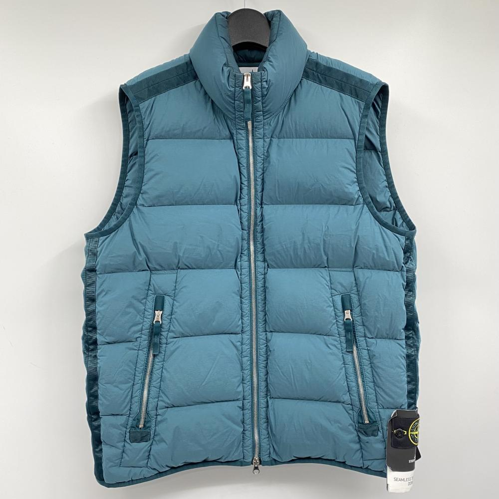 | 209999093760)STONE ISLAND ガーメントダイシームレスダウンベスト ブルー サイズL 79-15G-14-28 |