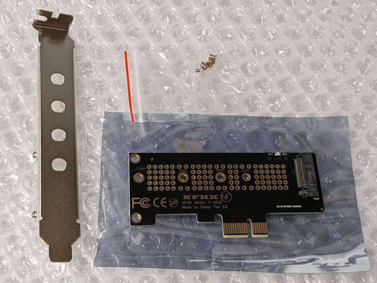 M.2(NGFF)のNVMe SSDをPCIe x1 スロットに取り付けするアダプターで標準ブラケット仕様です。