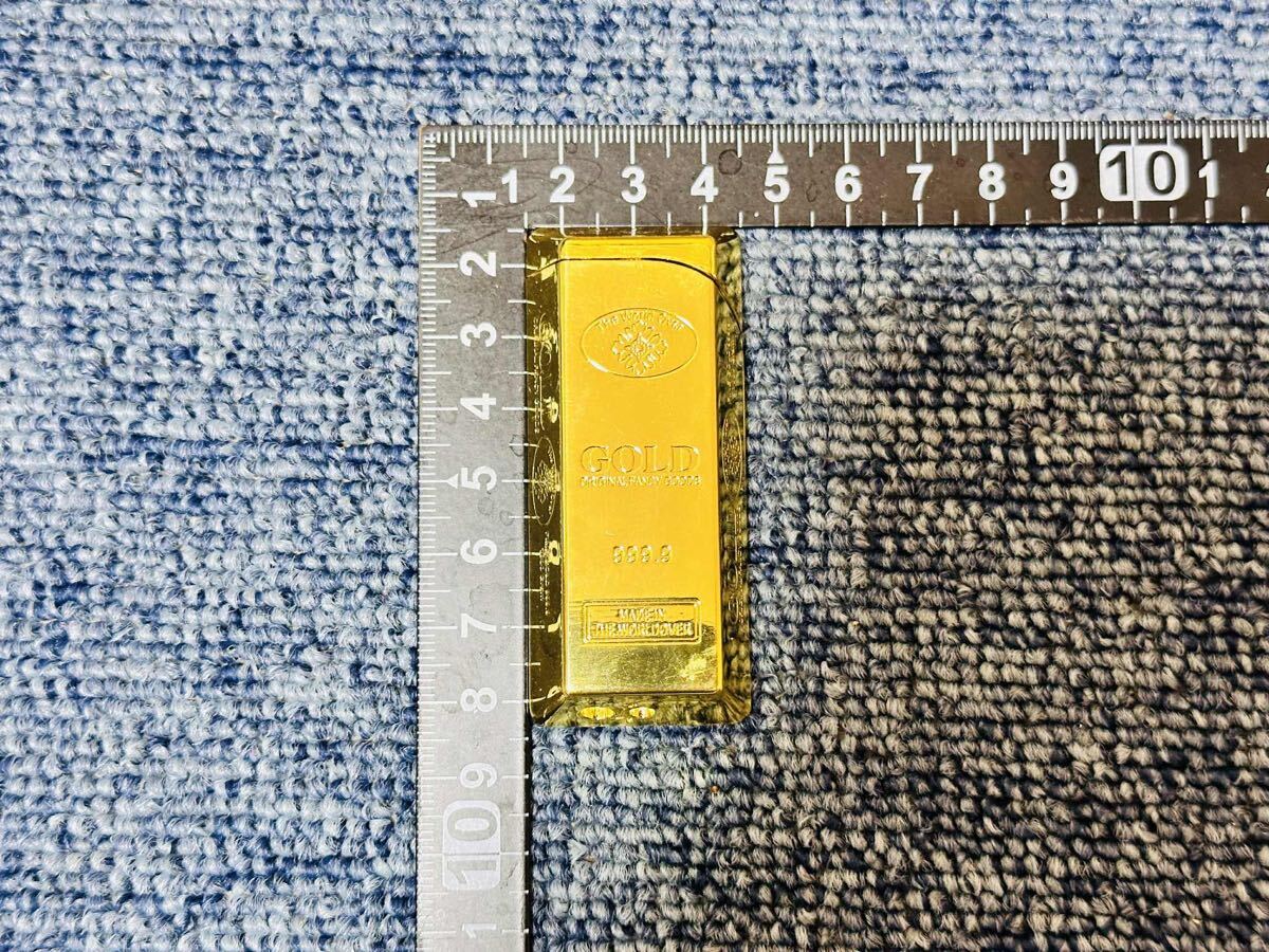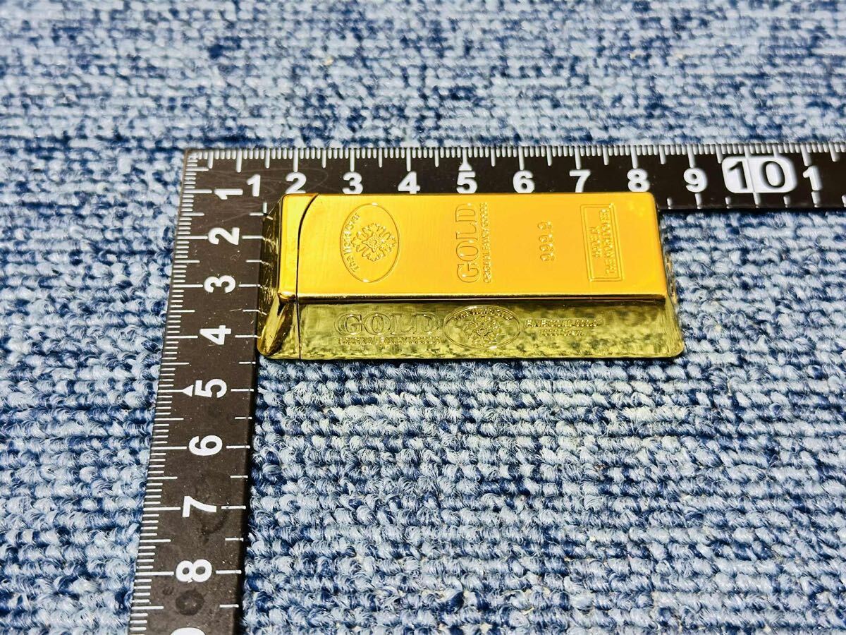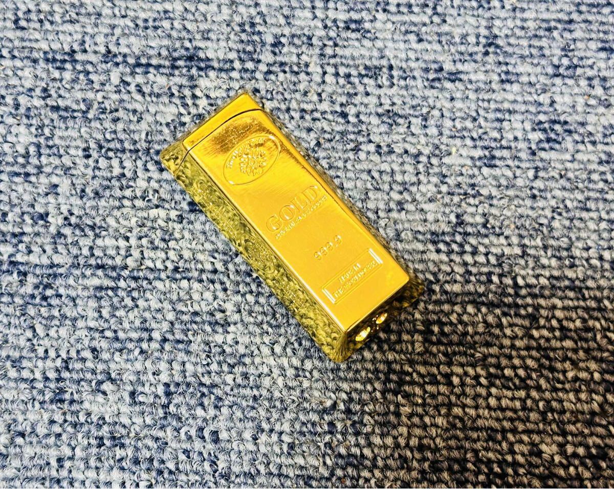 本物の金の延べ棒のようなデザインが目を引く、ユニークで高級感のあるターボライターです。