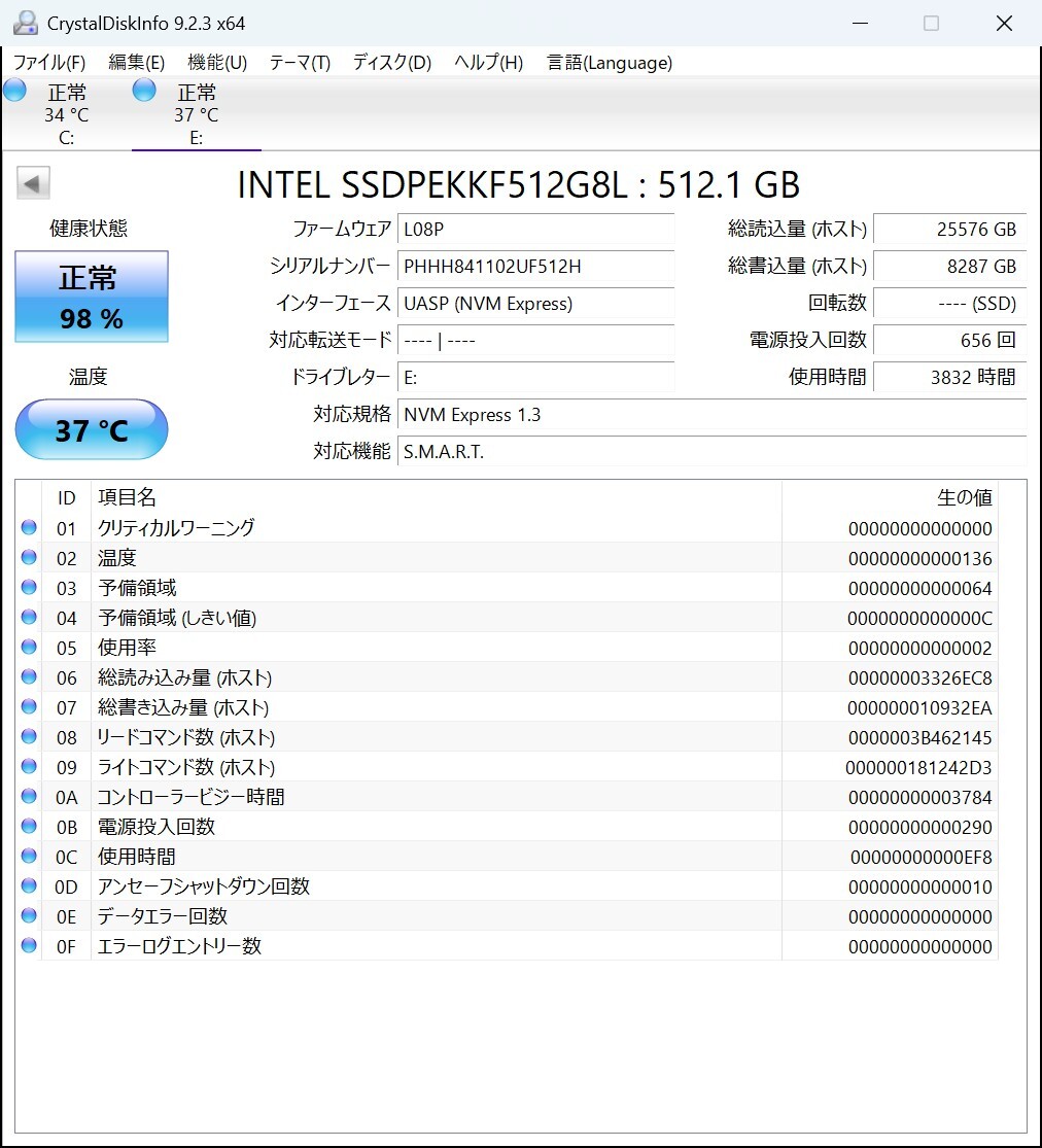 | ★☆1円 ~スタート☆INTEL SSD M.2 2280 NVMe 512GB 使用時間:3832H☆★ | |
