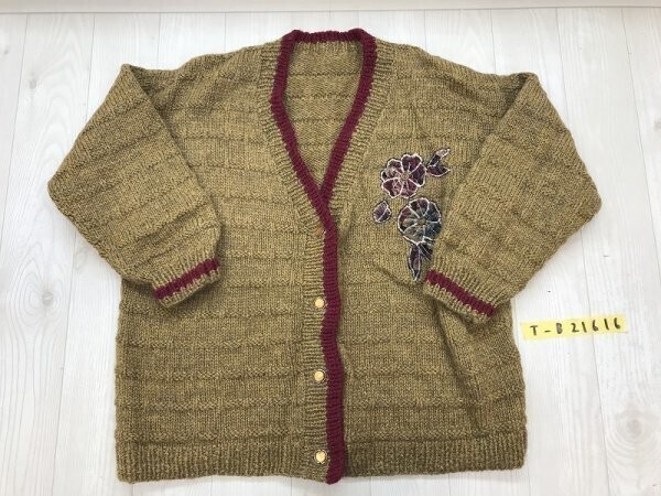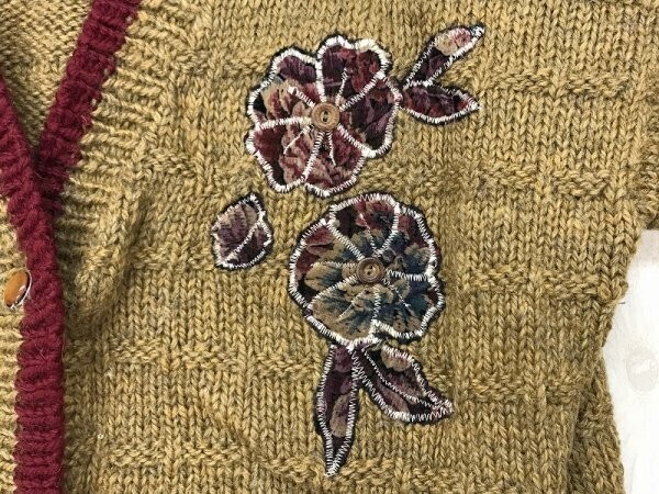 レディース 花モチーフ ニット Vネック カーディガン キャメルエンジ です。