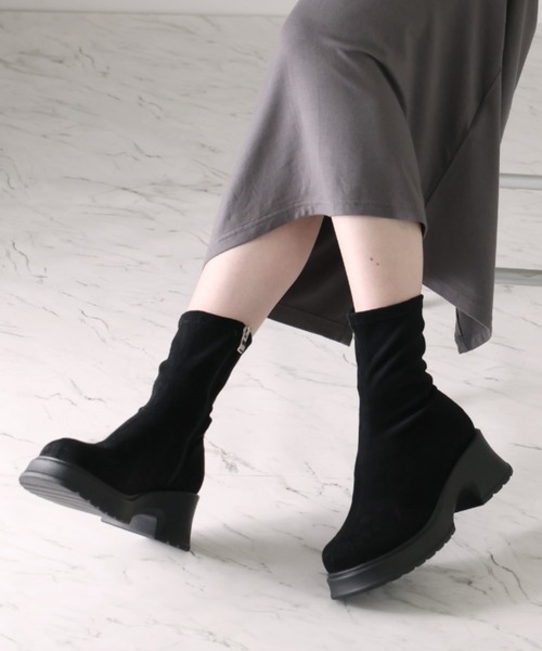 参考商品名:ボリュームトゥ厚底ストレッチミドルブーツ