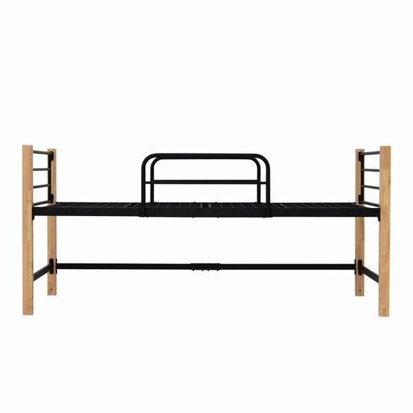 パイプベッド★天然木脚パイプベッド ミドルタイプ シングル/高級感 安心感 床下空間利用 メッシュ床/ブラックxブラウン/a1