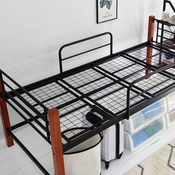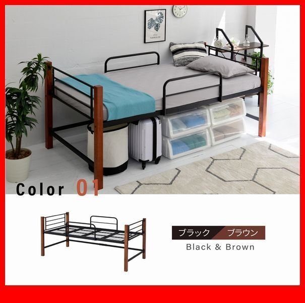 温かみのある天然木とクールなスチールのコントラストがおしゃれな、ちょっと高めのシングルベッドです。