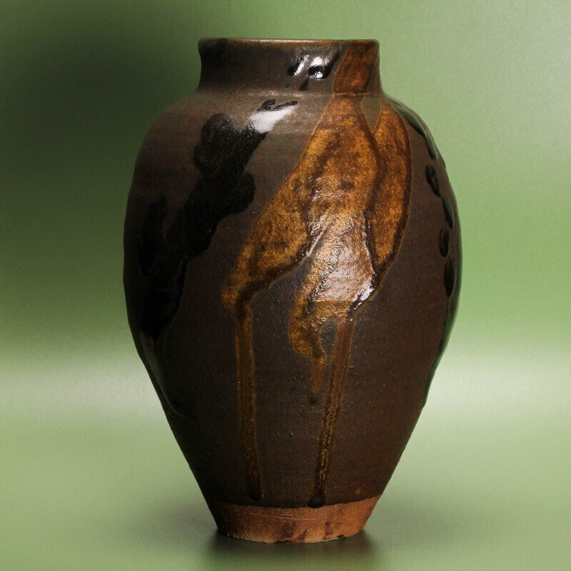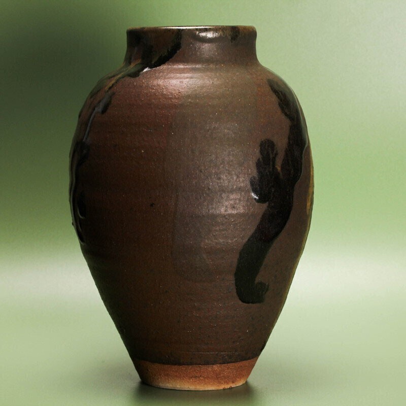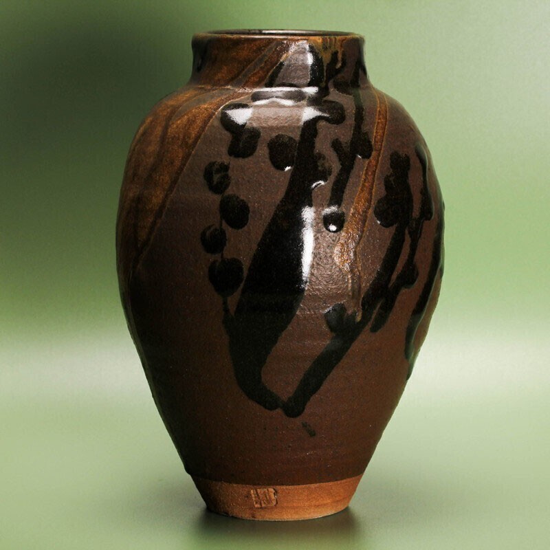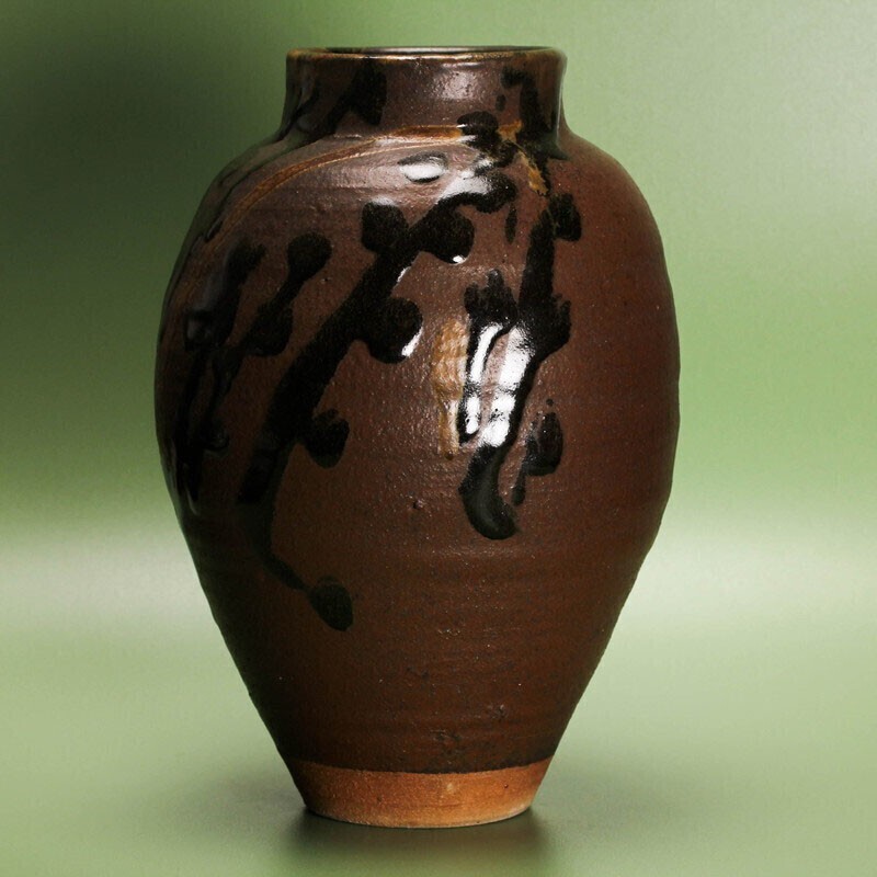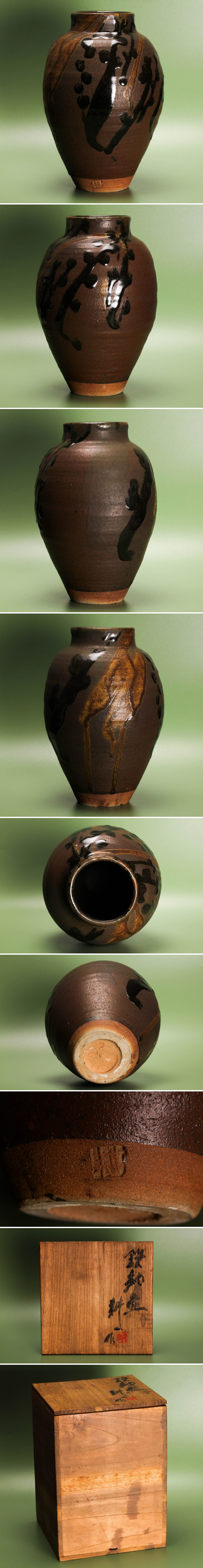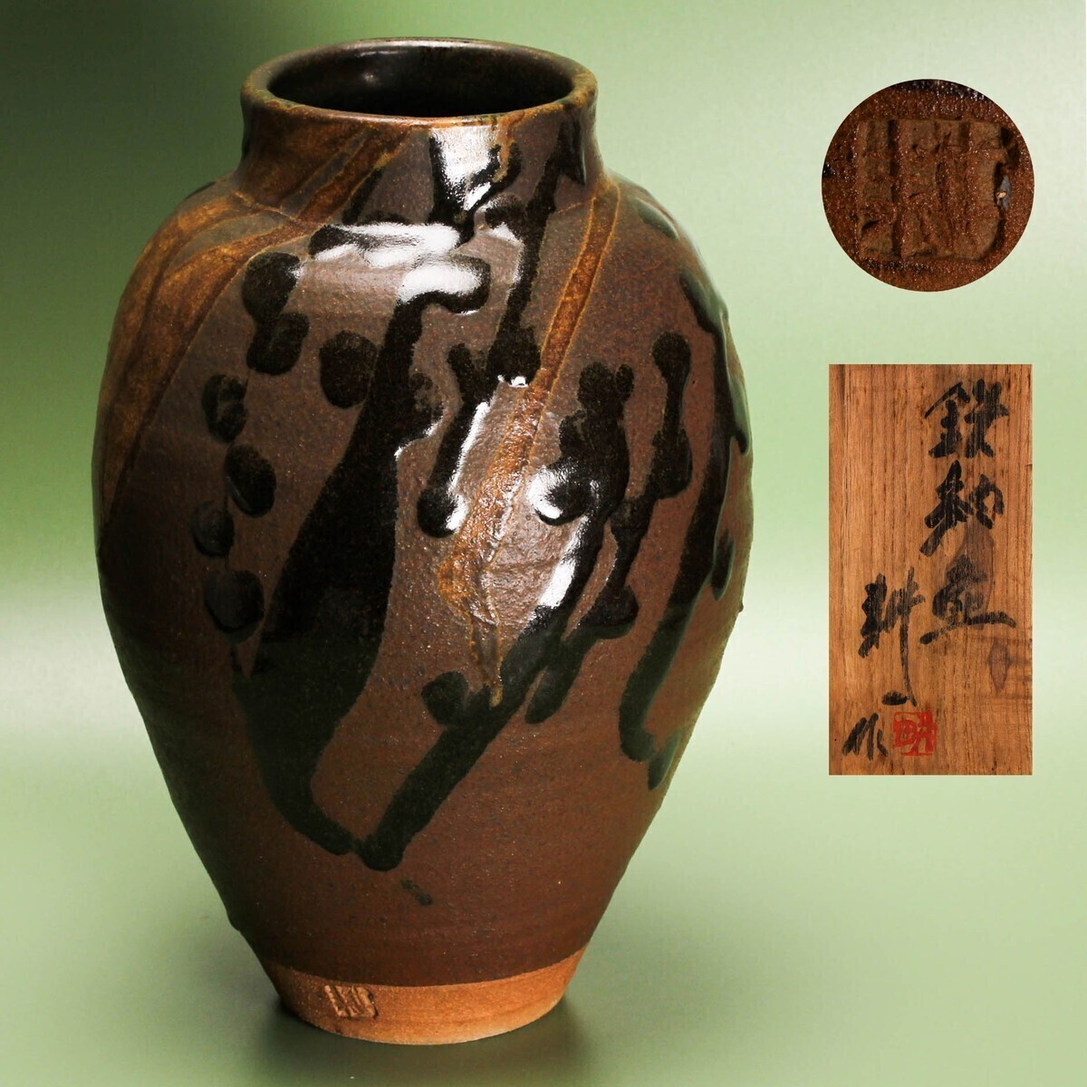 人間国宝 田村耕一 鉄釉壷 共箱 本物保証
