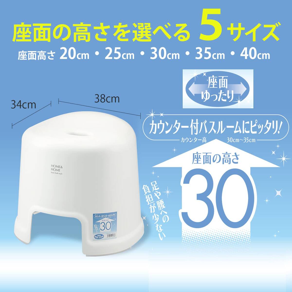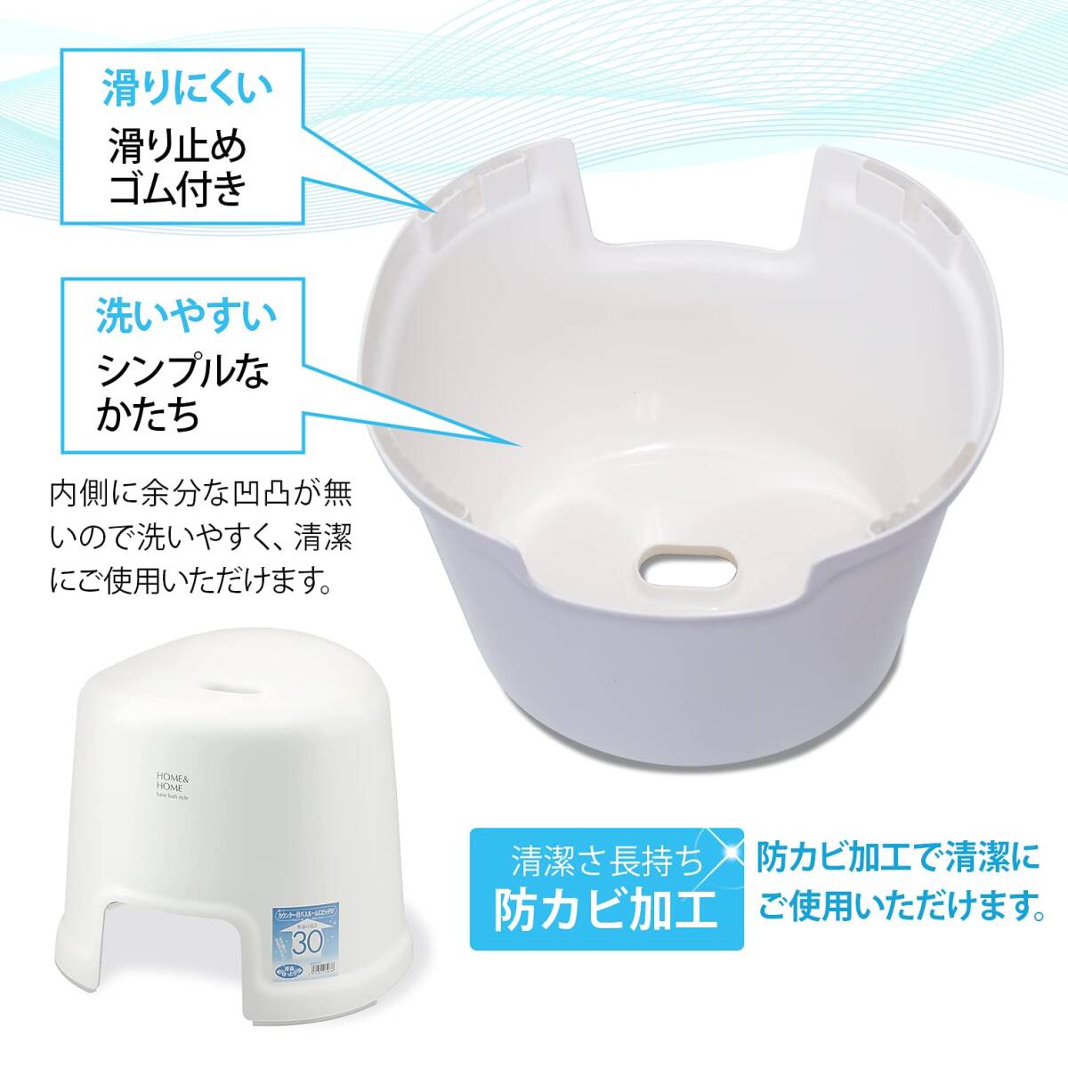 説明 商品紹介 - より ●色合いが浴室とマッチしやすい風呂椅子 ●椅子の高さは約30cmで、低めのバスカウンターが設置された浴室に適したサイズ ●飾らずシンプルに年齢を問わず誰でも使えるようなベーシックなデザイン ●防カビ加工とすべり止めが施されている