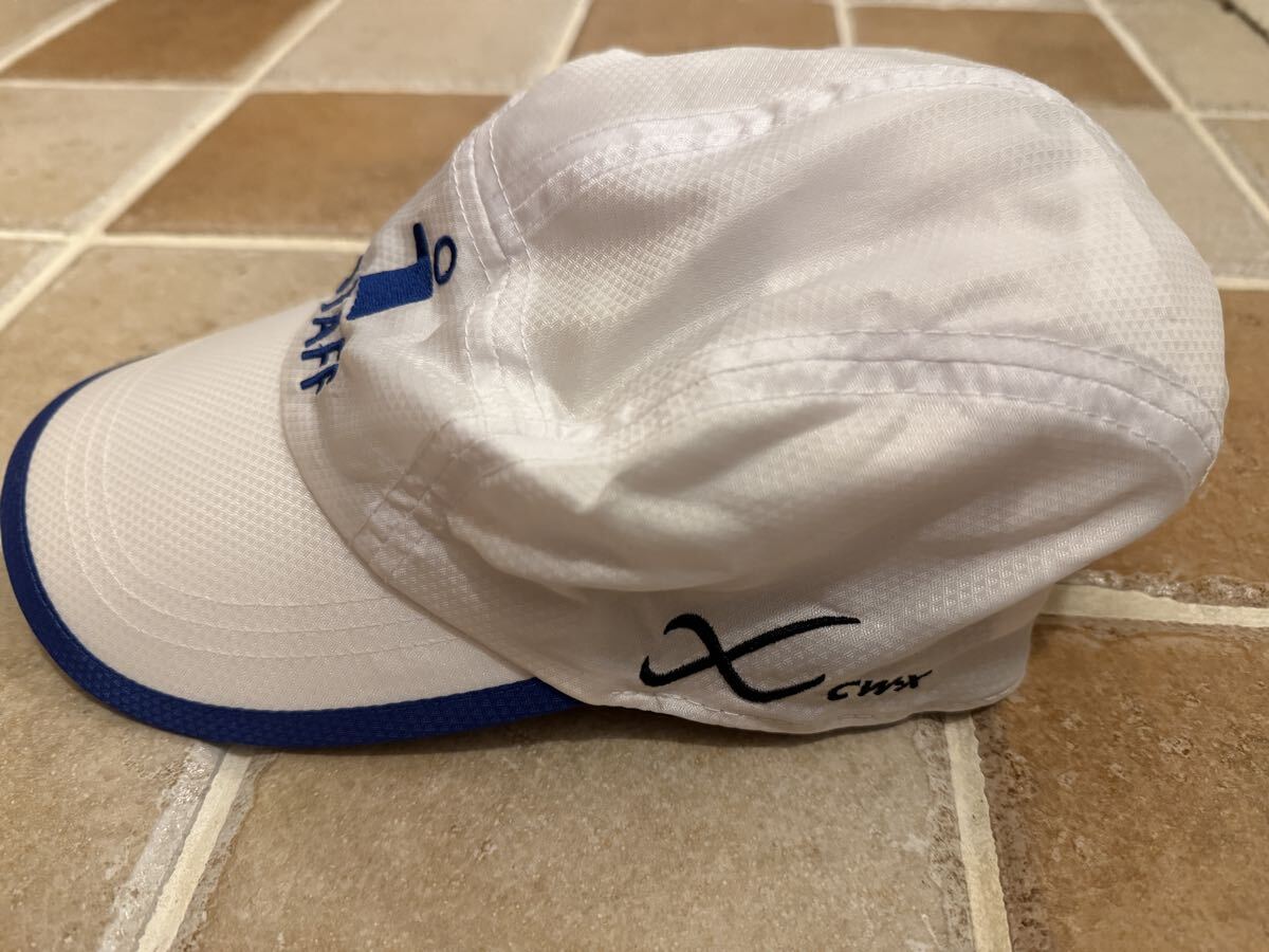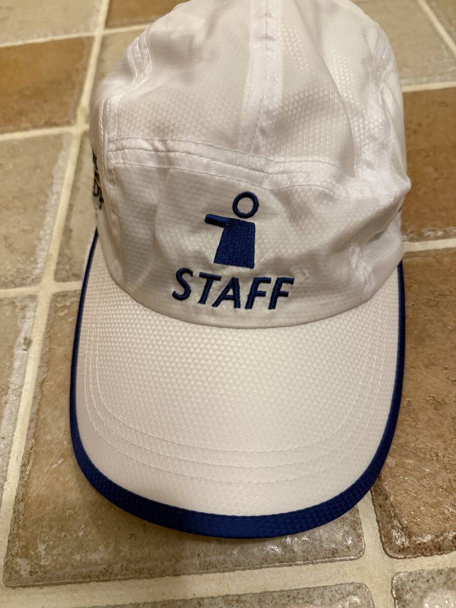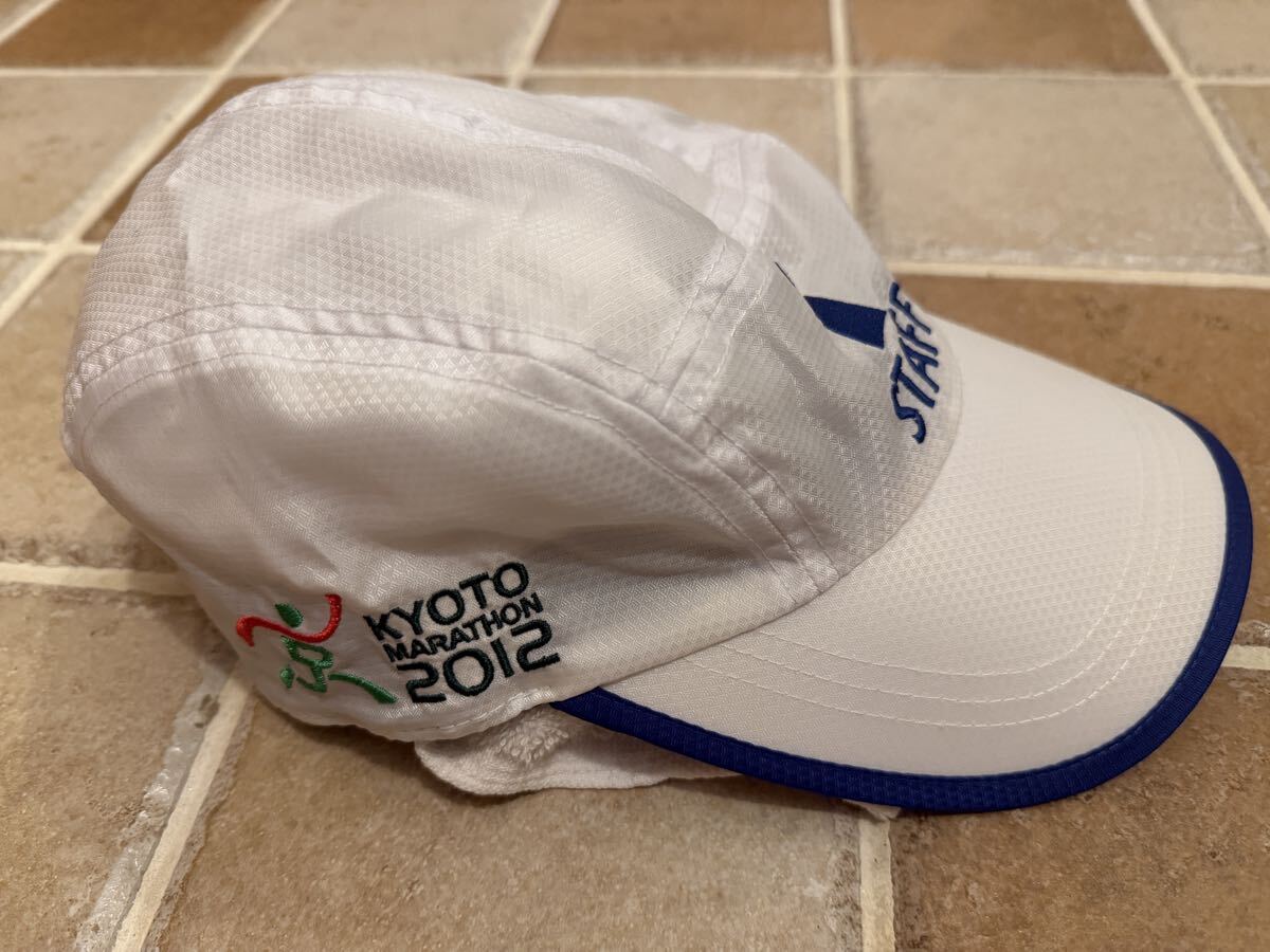 京都マラソンのボランティアキャップ、軽量で通気性に優れたデザイン。