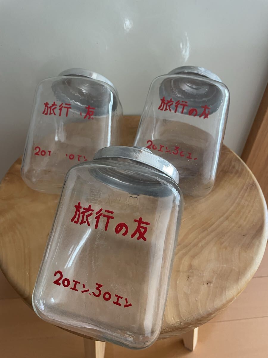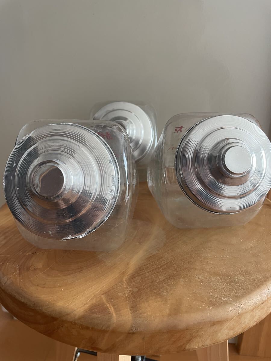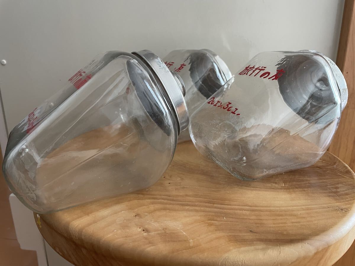 昭和レトロな駄菓子瓶3個セットです。文字がきえかかっているのもあります。