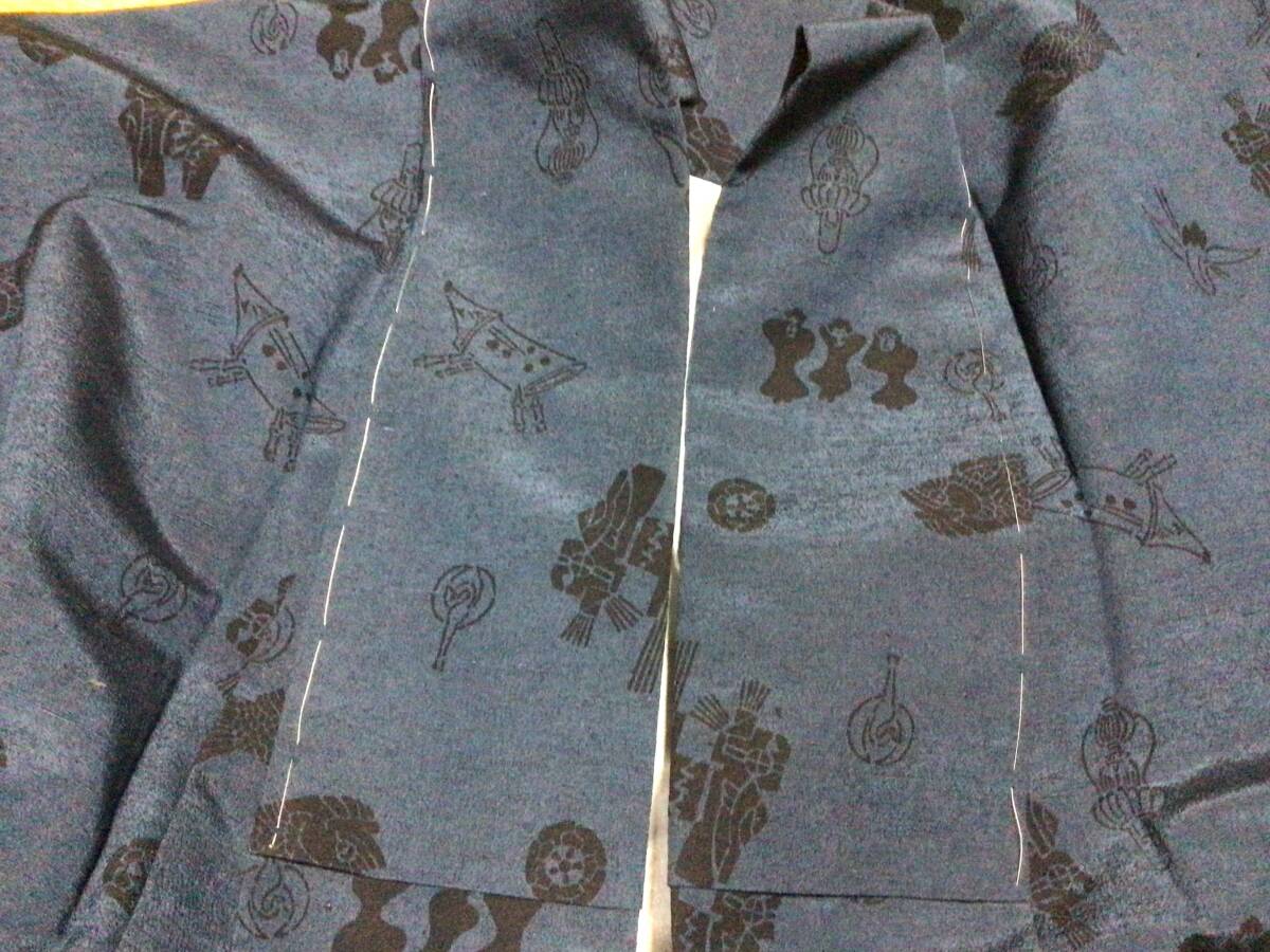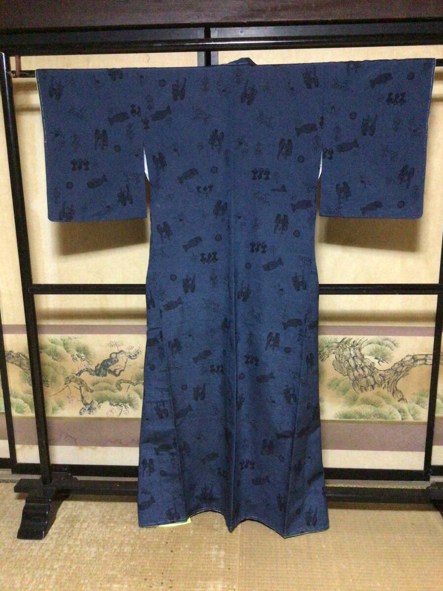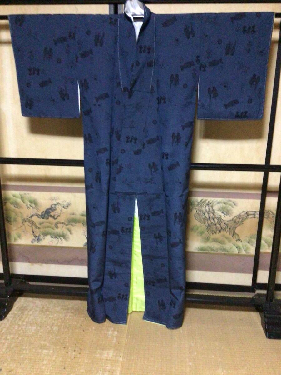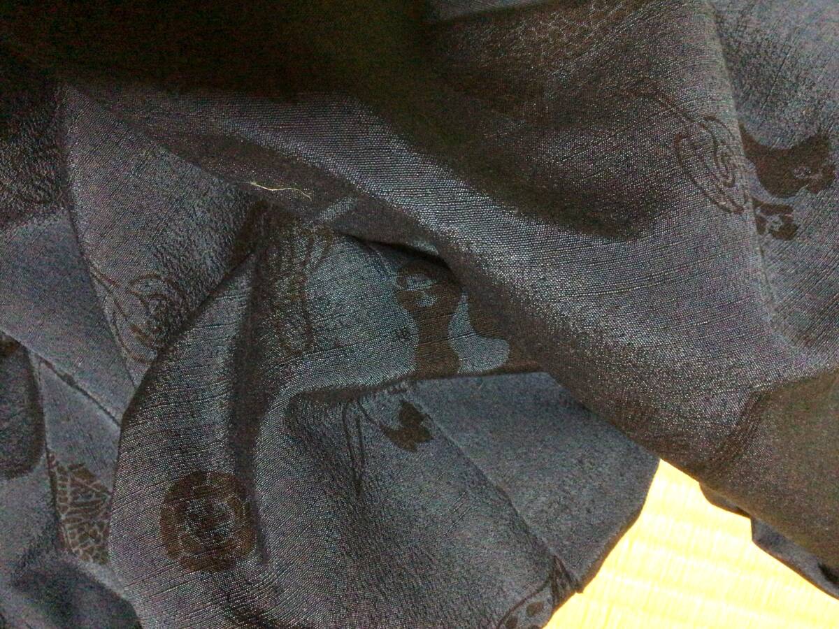 丈160、裄62、袖48センチあり絹紬です。仕付け糸付きで、状態は良く着用可能です。
