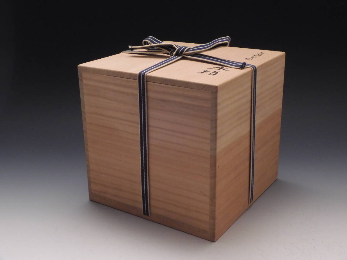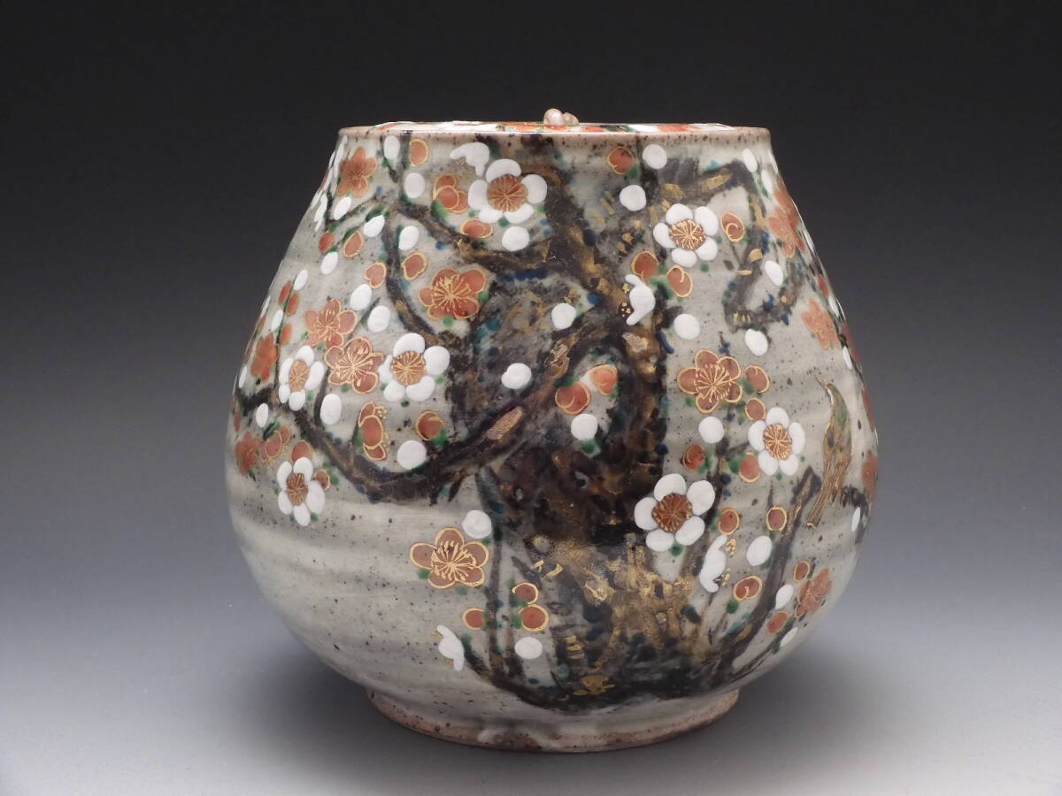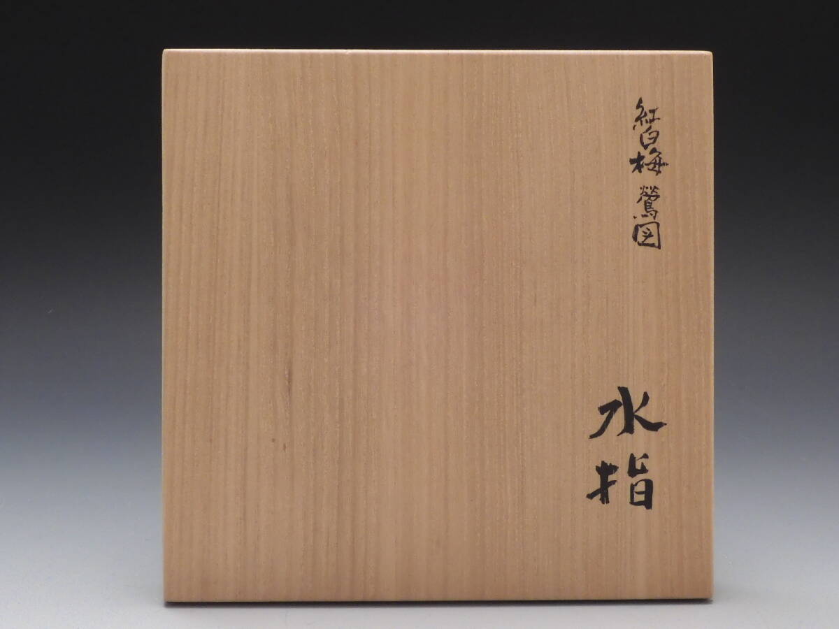 | ○梗○山本 雄次 麦波 造 色絵 紅白梅 鶯図 水指 茶道具 共箱 無傷 未使用 E85◇ |