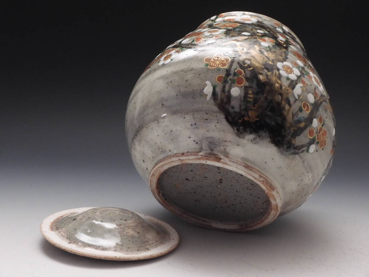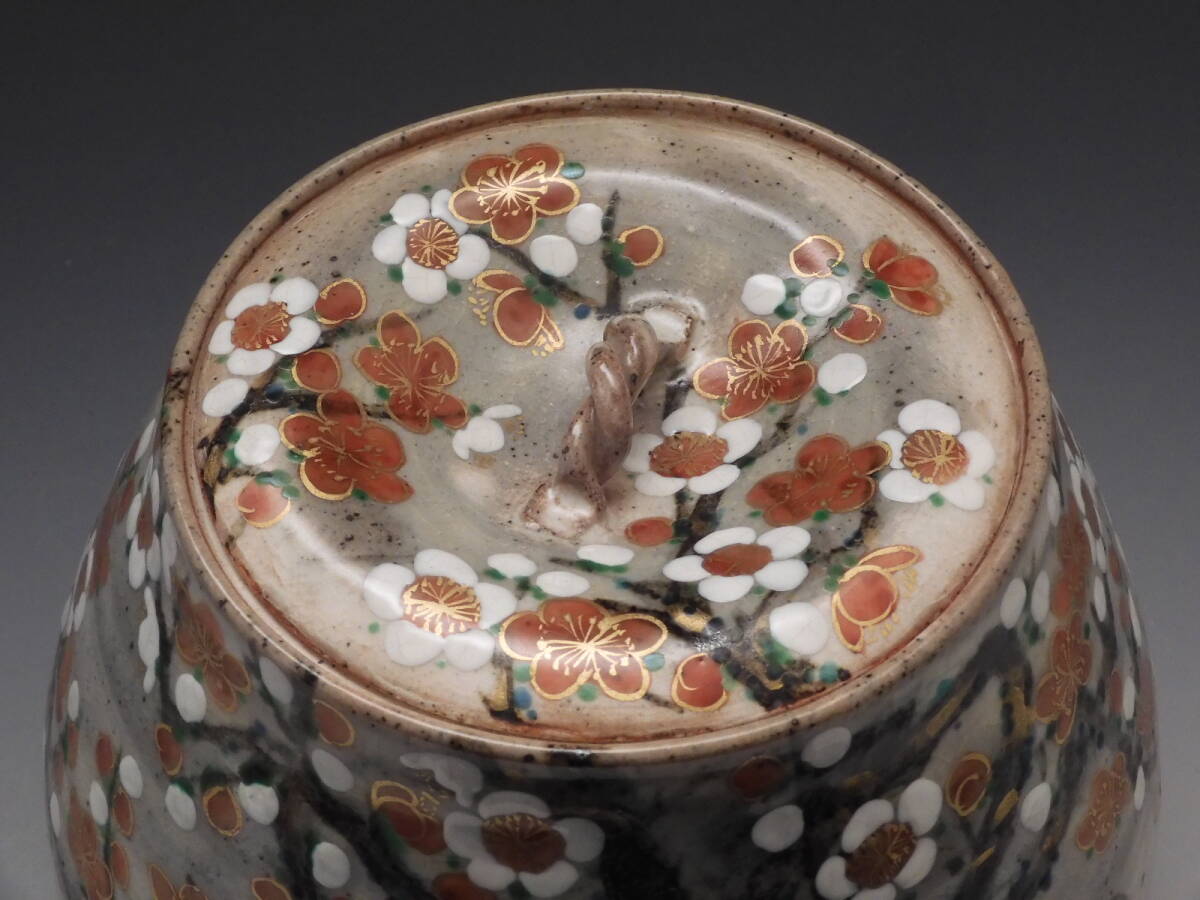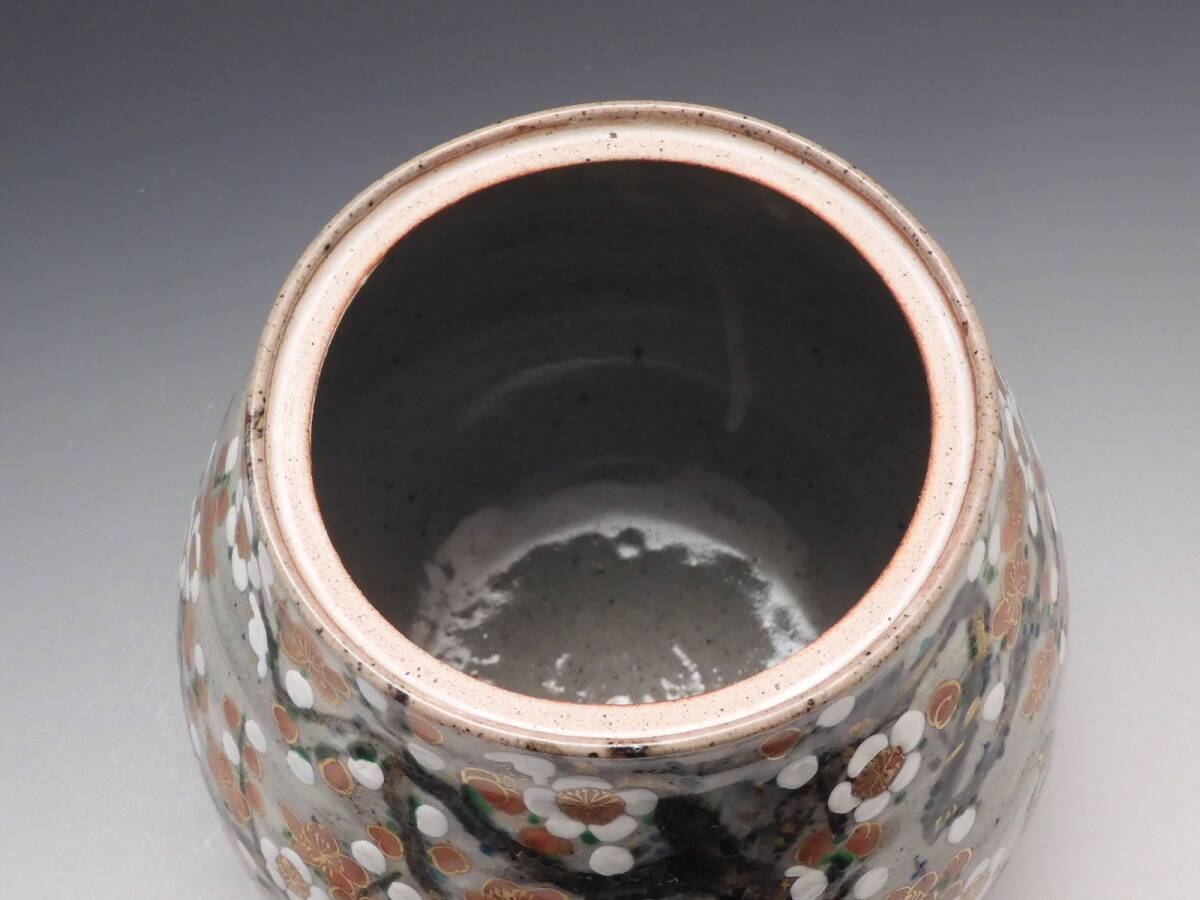 | ○梗○山本 雄次 麦波 造 色絵 紅白梅 鶯図 水指 茶道具 共箱 無傷 未使用 E85◇ |